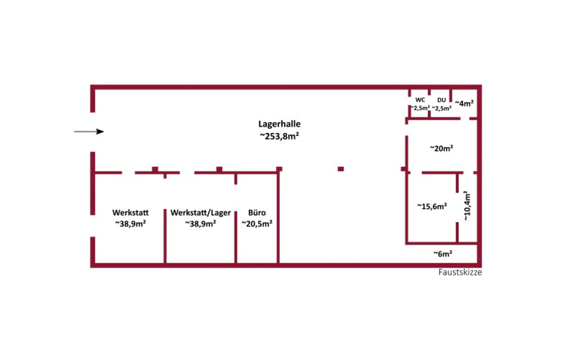 Wir freuen uns, Ihnen diese schöne Halle für Ihren Gewerbebetrieb oder als Lager mit Büroräumen anbieten zur Miete zu dürfen. Das Mietobjekt besteht aus einer Halle mit Sanitärräumen und Aufenthaltsräumen und einem abgetrennten Bürobereich. Die Halle (ohne Büroräume) ist ca. 25,6 m lang und ca. 13,5 m breit. Im vorderen Teil wurden Büroräume abgetrennt und verschmälern damit den vorderen Teil der Halle auf 7m. Die Immobilie eignet sich hervorragend als Firmenstandort, zum Lagern diverser Gegenstände oder als Gewerbebetrieb.