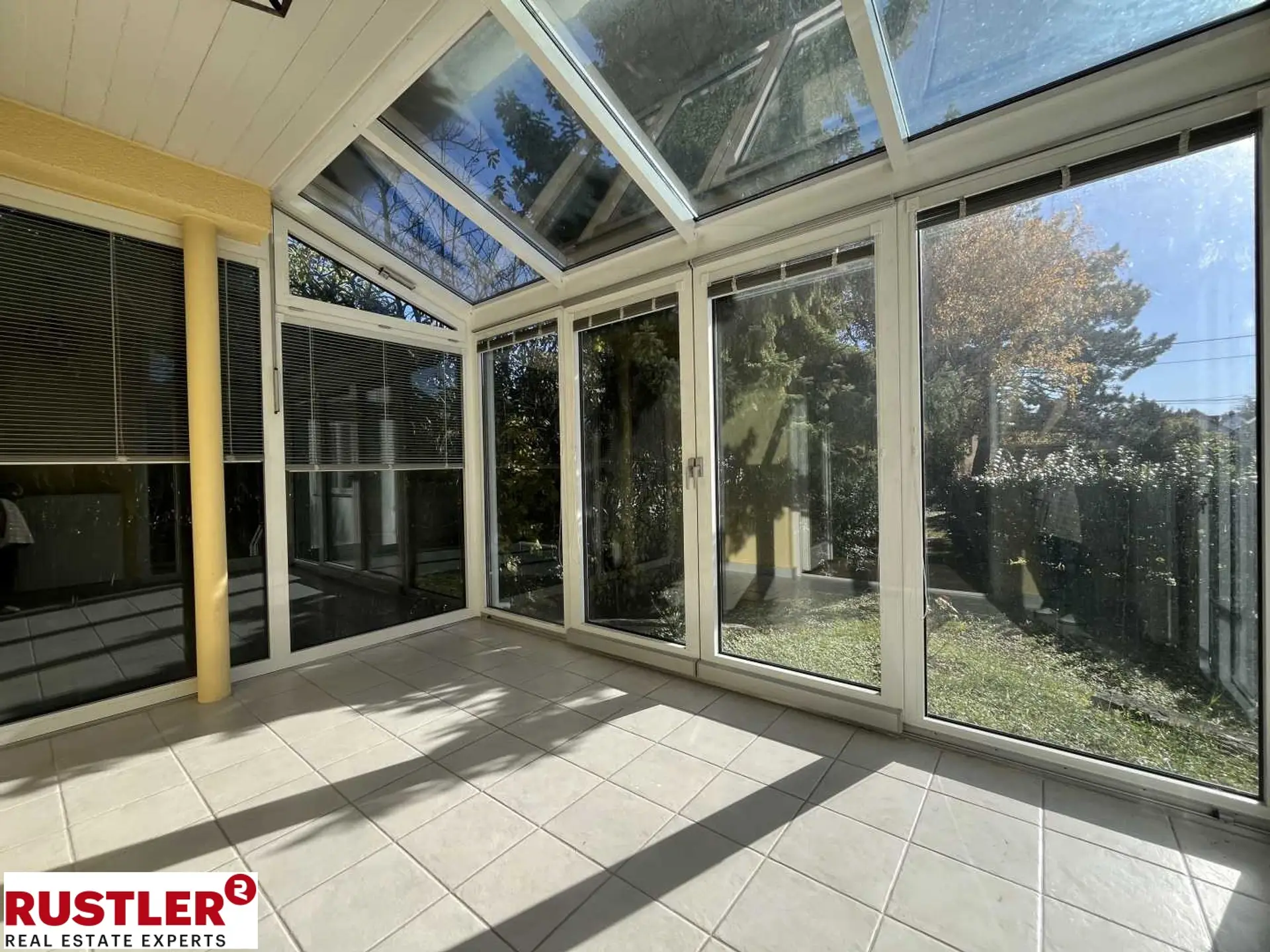 Einen großen Mehrwert bietet der verglaste, südliche Wintergarten der zu jeder Jahreszeit zum Verweilen einlädt.