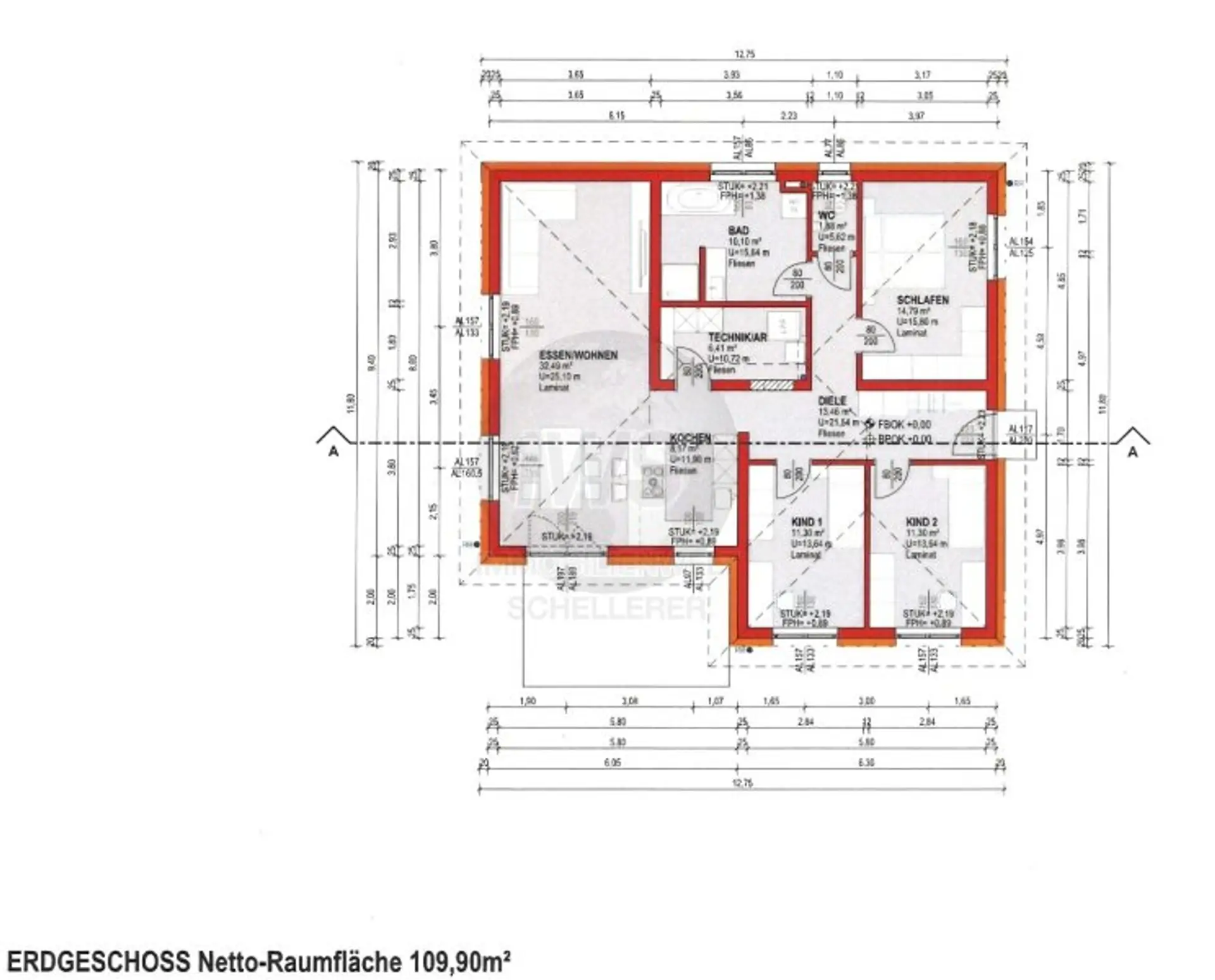– Laminatböden laut Plan inkl. Sockelleisten und Verlegung