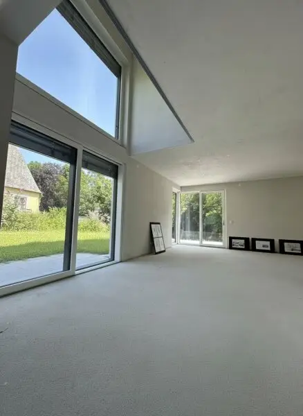 Im Vordergrund steht eine nachhaltige Bauweise mit moderner Architektur in Einklang zu bringen. Große Fensterelemente und Freiflächen beziehen dabei die Natur in den Wohnraum mit ein, und schaffen damit aus jedem Fenster entspannende Ausblicke ins Grüne.