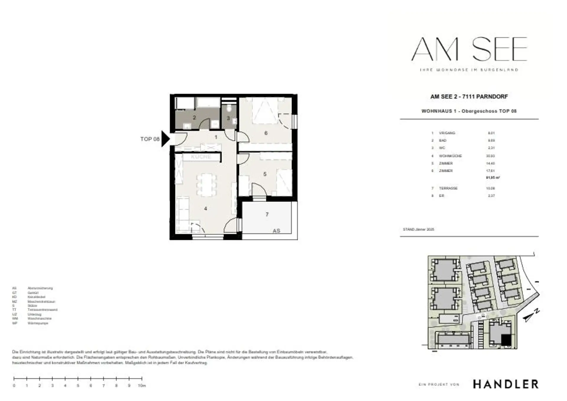 Das Projekt Wohnen am See liegt in idyllischer Ruhelage am östlichen Ortsrand von Parndorf, nur wenige Schritte vom See entfernt. Eingebettet in großzügige Grünflächen genießen Bewohner hier naturnahes Wohnen mit hohem Freizeitwert. Rad- und Spazierwege führen direkt an der Anlage vorbei, während Badeseen, Sport- und Erholungsmöglichkeiten in unmittelbarer Nähe zur Verfügung stehen.Gleichzeitig überzeugt die Lage durch ihre ausgezeichnete Verkehrsanbindung: Über die A4 und A6 ist Wien in rund 30 Minuten erreichbar, der Flughafen Wien-Schwechat in etwa 25 Minuten. Das Designer Outlet Parndorf sowie zahlreiche Einkaufsmöglichkeiten, Schulen und Kindergärten befinden sich im nahen Umfeld.So verbindet Wohnen am See das Beste aus beiden Welten – entspanntes Wohnen im Grünen und die schnelle Erreichbarkeit der Stadt.