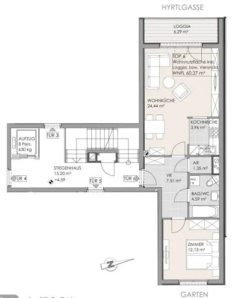 Die Wohnung verfügt über ein helles großes Zimmer und eine offene Wohnküche, ideal für Singles, Paare oder kleine Familien. Ein besonderes Highlight ist die nach Westen ausgerichtete Loggia, die für Wohlgefühl und entspannte Stunden an sonnigen Tagen sorgt.