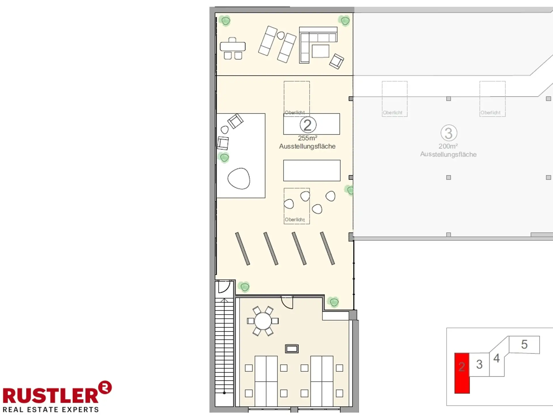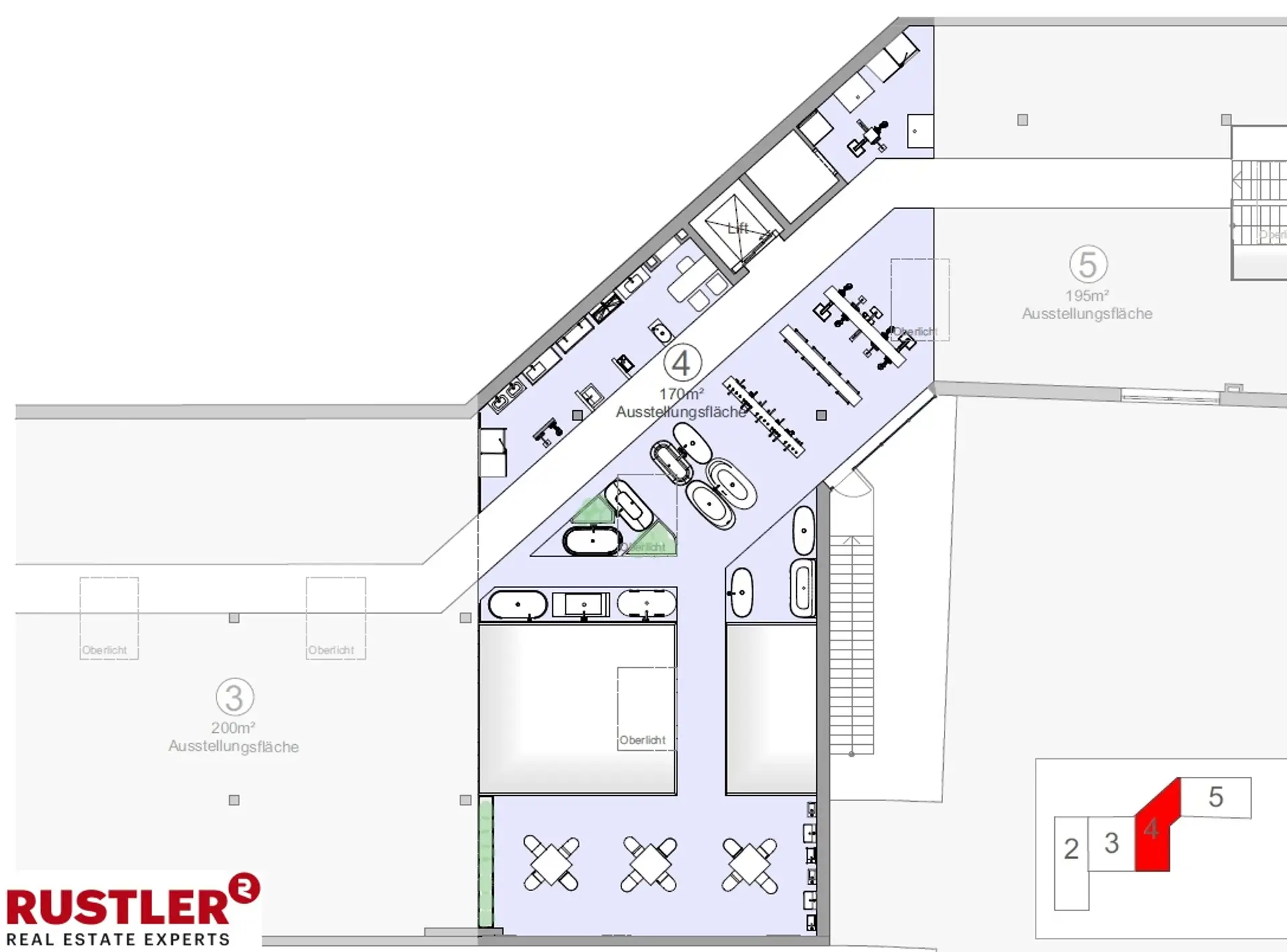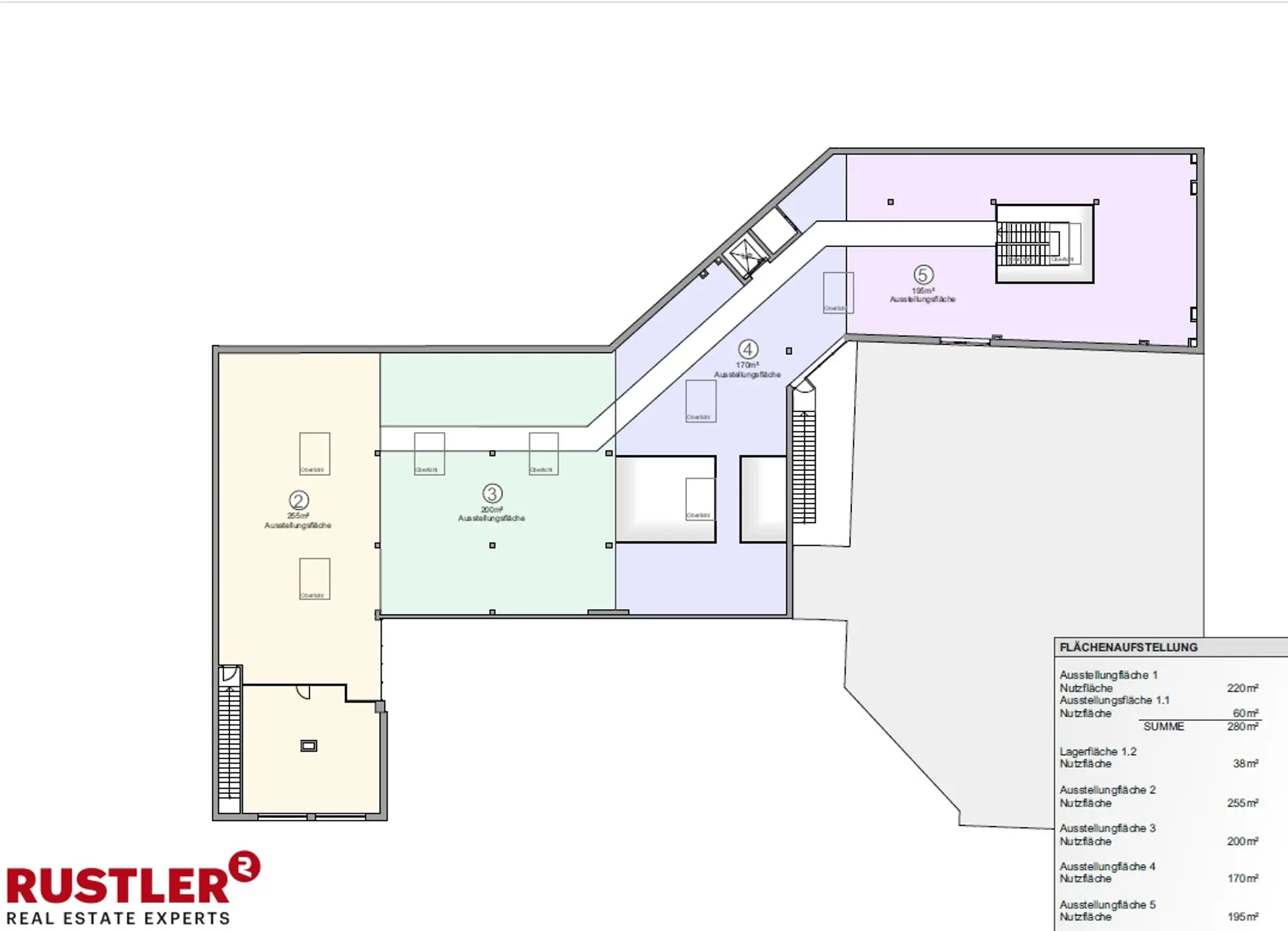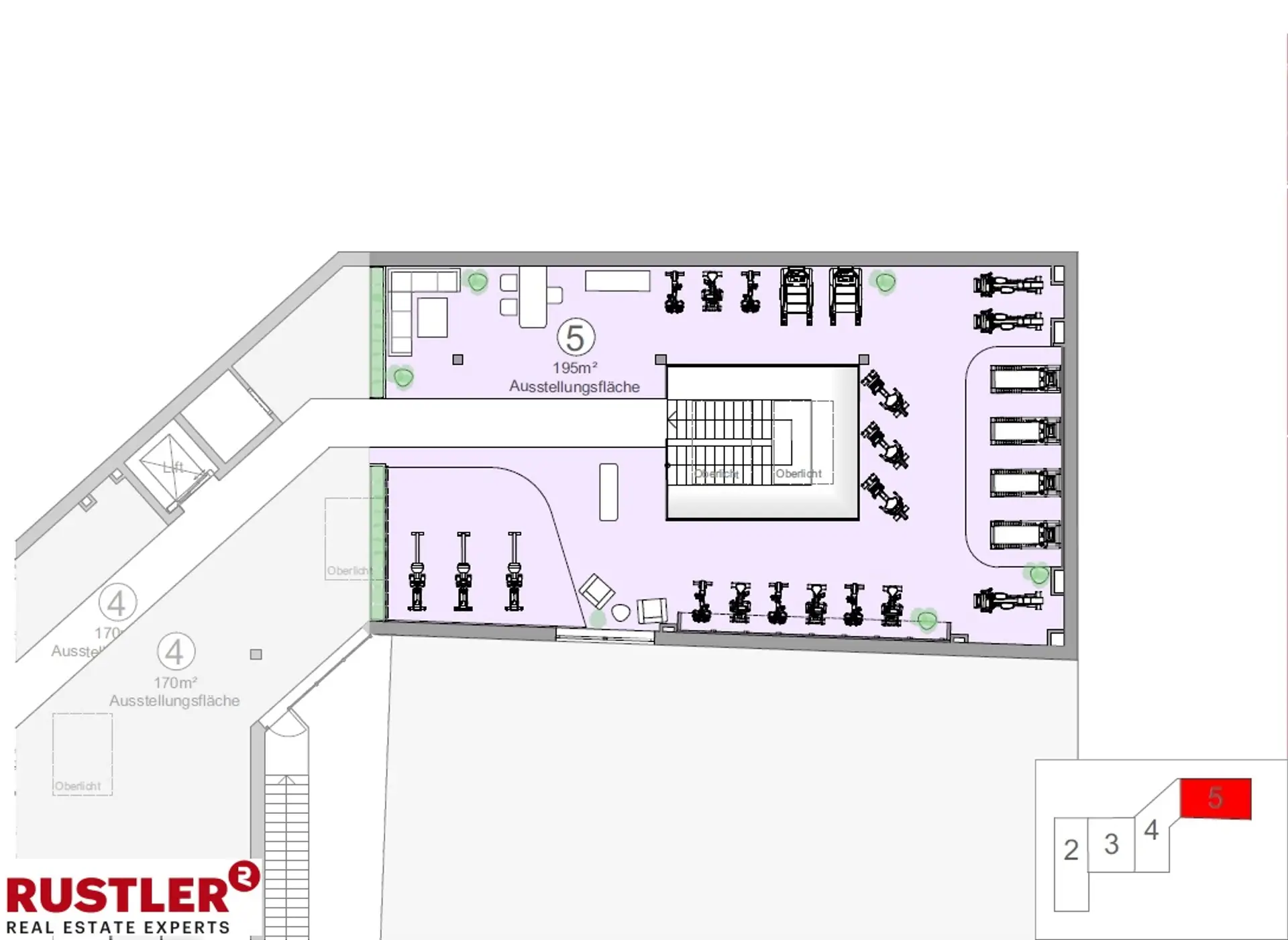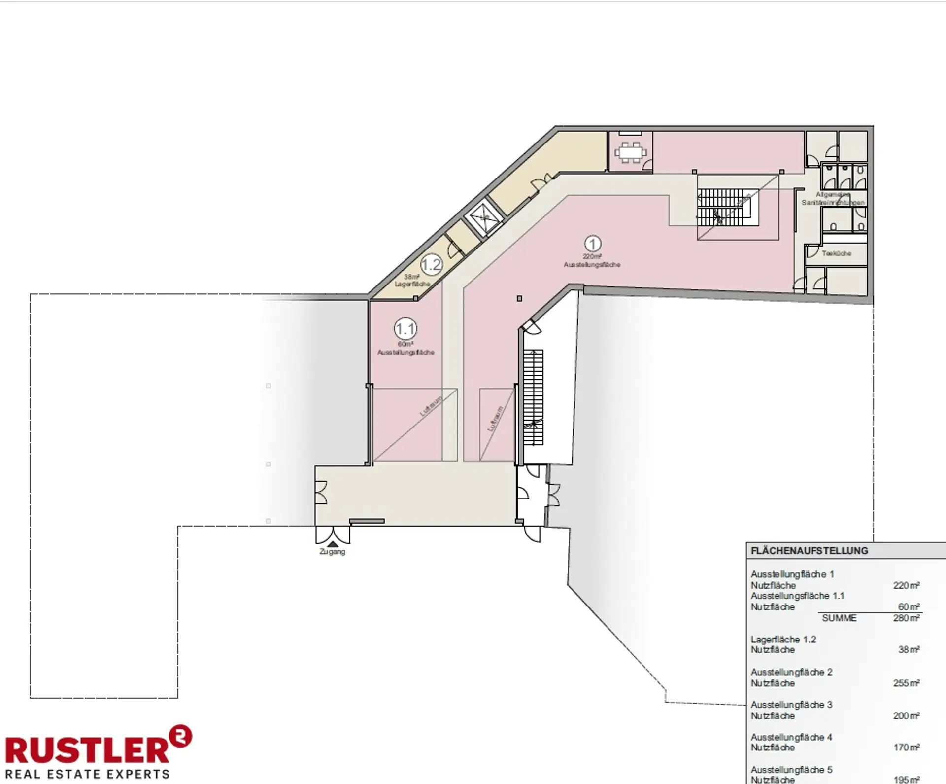 Diese vielseitig nutzbare Ausstellungsfläche befindet sich in einem der dynamischsten Gewerbestandorte des 23. Wiener Bezirks einem Standort, der sich in den letzten Jahren zu einem starken Interior- und Baunebengewerbe-Cluster entwickelt hat. Unternehmen profitieren hier besonders von Sichtbarkeit, einem professionellen Umfeld und wertvollen Synergieeffekten. Die gesamte verfügbare Fläche umfasst ca. 1.350 m² und gliedert sich in ein Erdgeschoss (ca. 323 m²) sowie ein Obergeschoss (ca. 825 m²). Um den Mietern ein optimales Umfeld zu bieten, wurde vom Eigentümer ein variables Shop-in-Shop-Konzept entwickelt, das neue wie bestehende Marken vernetzt und gemeinsame Events sowie Kooperationen ermöglicht. Marken wie Molto Luce, Breitschopf Küchen, Dana Türen und Sedda Polstermöbel schaffen ein etabliertes und hochwertiges Umfeld und dadurch ein ideales Fundament für Unternehmen, die ihre Marke bewusst positionieren möchten. Durch die spielend leichte Flächenanpassung eignet sich die Fläche perfekt für Interior-, Design- und Bau(neben)gewerbeunternehmen, die ein professionelles Präsentationsumfeld suchen. Im Obergeschoss sind bereits Wasser- und Kanalanschlüsse vorbereitet. Die gesamte Fläche ist zudem mit Fußbodenheizung ausgestattet. Flächenaufteilung (architektonisch geprüft & sofort umsetzbar): EG: ca. 323 m² OG Fläche 2: ca. 257 m² OG Fläche 3: ca. 202 m² OG Fläche 4: ca. 170 m² OG Fläche 5: ca. 195 m² Sollte keine der oben genannten Aufteilungsmöglichkeiten für Ihr Konzept passend sein, kann mit dem Vermieter auch eine andere Aufteilung der Fläche erarbeitet werden, individuell und auf Ihre Anforderungen. Die Flexibilität dieses Objekts sowie die ausreichenden Parkplätze und E-Ladestationen direkt am Gelände gehört zu den großen Vorteilen des Objektes. Auch das angrenzende Geschäftsumfeld ist geprägt von namhaften Marken des Baunebengewerbes, darunter Internorm Fenster, Heller Sonnenschutz, Miele Experience Center, Sto-Verkaufscenter, Hagleitner Hygiene, Schachermayer/Rechberger und viele mehr. Diese dichte Konzentration macht den Standort zu einer der gefragtesten Gewerbezonen für Unternehmen, die sich mit Bau, Sanierung, Innenausbau oder Interior-Design befassen. Lage Die Liegenschaft befindet sich in der Vorarlberger Allee 23 im 23. Wiener Gemeindebezirk, direkt an der S1-Abfahrt Vorarlberger Allee einem der wichtigsten Verkehrsknotenpunkte im Süden Wiens. Die unmittelbare Nähe zur S1 (Südost-Tangente) sowie die schnelle Erreichbarkeit der A2 (Südautobahn), A21 (Wiener Außenringautobahn) und A4 (Ostautobahn) garantieren eine optimale Verkehrsanbindung für Kunden, Mitarbeiter und Lieferanten. Über diese Achsen ist die Liegenschaft nicht nur aus der Wiener Innenstadt, sondern auch aus den Bundesländern Kärnten, Steiermark, Burgenland, Niederösterreich, Oberösterreich und Salzburg in kurzer Zeit erreichbar. Damit eignet sich der Standort ideal für Unternehmen mit österreichweiter Tätigkeit oder zentralem Vertriebs- bzw. Servicestützpunkt. Die Buslinie 67B verbindet den Standort zudem mit den U-Bahn-Stationen U6 Alterlaa und U1 Alaudagasse, wodurch auch eine hervorragende Anbindung an das öffentliche Verkehrsnetz besteht. Die Lage bietet somit eine hervorragende Kombination aus urbaner Erreichbarkeit und überregionaler Anbindung, wie sie im Süden Wiens nur selten zu finden ist.