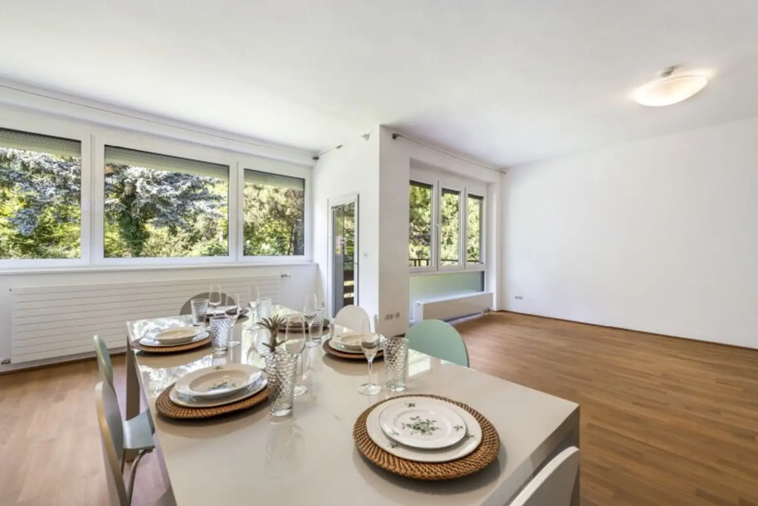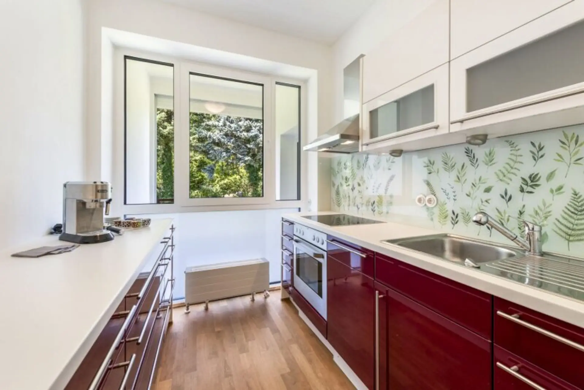 Die Wohnung wurde umfassend modernisiert und überzeugt durch eine stilvolle Ausstattung. Hochwertige Tischlermaßeinbauten, edles Parkett und moderne Fließen, elektrisch bedienbare Außenrollos sowie stylische Glastüren schaffen ein harmonisches Wohnambiente. Das Vorzimmer besticht durch die optimal konzipierten Tischlermaßschränke, die viel Stauraum bieten und schon beim Betreten der Wohnung einen harmonisches Wohngefühl schaffen. Die moderne Einbauküche ist nicht nur funktional, sondern auch ein echter Blickfang, der beim Kochen Freude bereitet. Das Badezimmer ist mit einer Badewanne sowie einer Dusche ausgestattet, sodass Sie sich nach einem langen Tag in der Stadt perfekt entspannen können. Loggia und Balkon bieten zu jeder Jahreszeit Erholung pur mit Grünblick. Die Alarmanlage verleiht ihnen Sicherheit. Ein Kellerabteil und ein praktischer Garagenplatz im Haus runden das außergewöhnliche Wohnangebot ab. Kurz gesagt: ein perfekter Ort zum Leben!