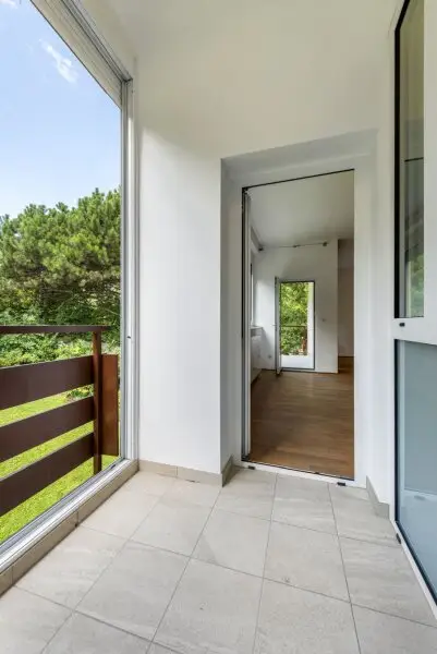 * Moderne Glastüren sowie Sicherheitstüre beim Wohnungseingang