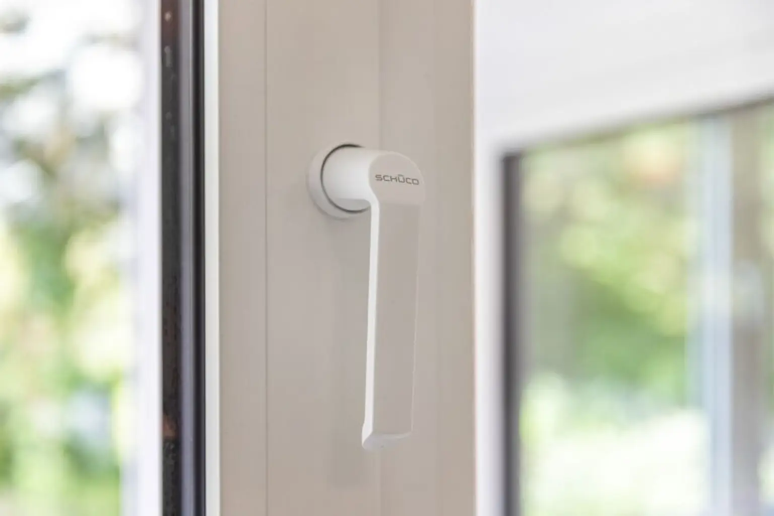 * Moderne Fenster der Marke Schüco mit elektrisch bedienbaren Außenrollos