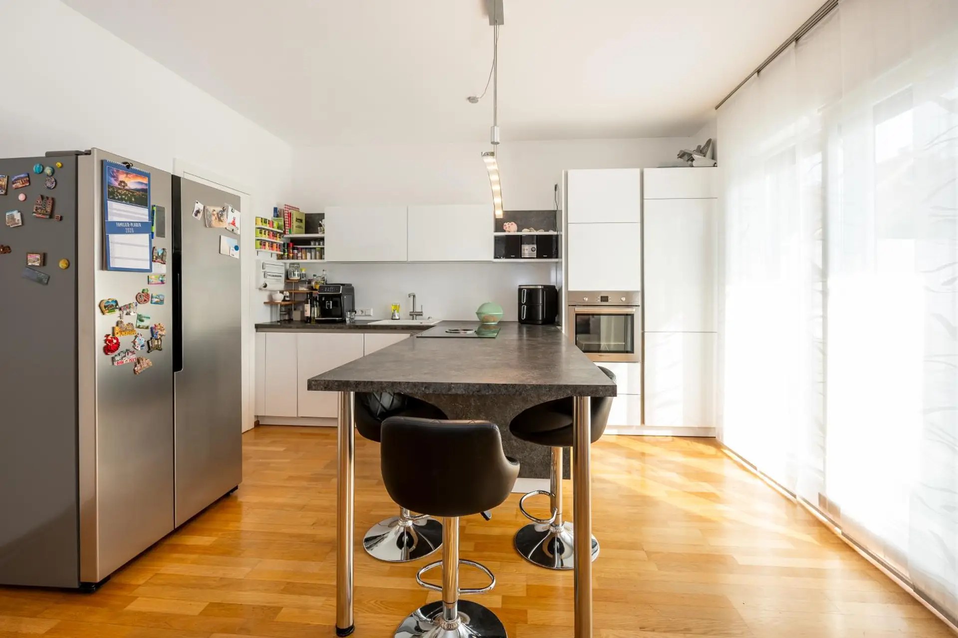 Beheizt wird die Wohnung über zentrale Gasheizung. Die Küche fügt sich stilvoll in den Wohnbereich ein und sorgt für eine angenehme Wohnatmosphäre.