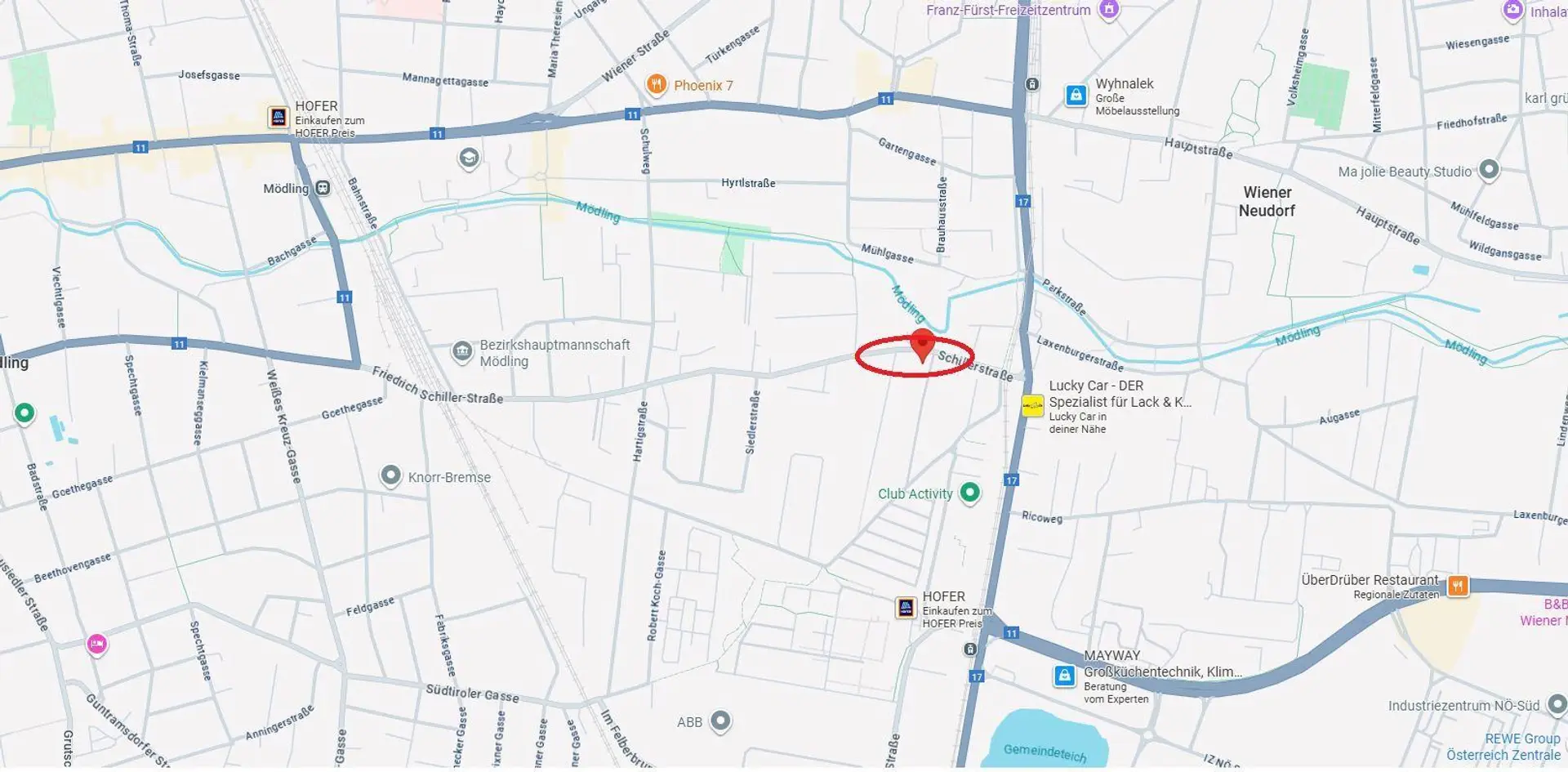 Die angebotene Eigentumswohnung befindet sich in der Schillerstraße 19/6 in Wiener Neudorf, einer ruhigen und familienfreundlichen Wohngegend, die eine optimale Anbindung an die Infrastruktur bietet. In unmittelbarer Nähe finden sich Einkaufsmöglichkeiten, Schulen und öffentliche Verkehrsanbindungen, die eine schnelle Erreichbarkeit von Wien und Umgebung gewährleisten.