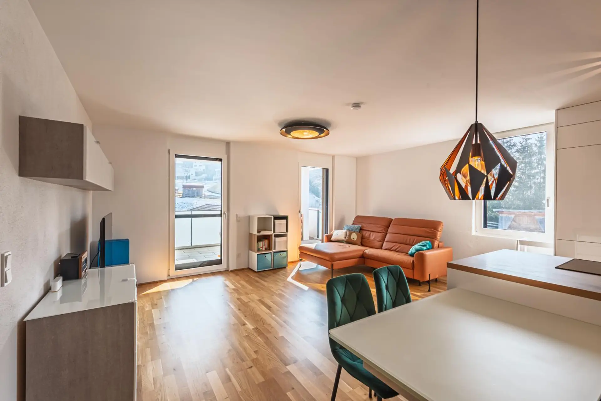 Diese moderne Neubauwohnung im 1. Obergeschoß eines im Jahr 2024 fertiggestellten Wohnhauses mit nur 6 Einheiten, überzeugt mit barrierefreiem Zugang und einem Lift. Die großzügige Sonnenterrasse bietet einen atemberaubenden Panoramablick und schafft eine perfekte Wohlfühlatmosphäre. Dank der durchdachten Raumaufteilung ist genügend Platz für die ganze Familie. Hochwertige Parkettböden, elektrische Raffstores, welche mittels App gesteuert werden können und eine exklusive DAN-Küche mit Markengeräten sorgen für erstklassigen Wohnkomfort. Das Objekt ist mit einem Glasfaseranschluss ausgestattet. Das elegante Badezimmer verfügt sowohl über eine Dusche als auch eine Badewanne.