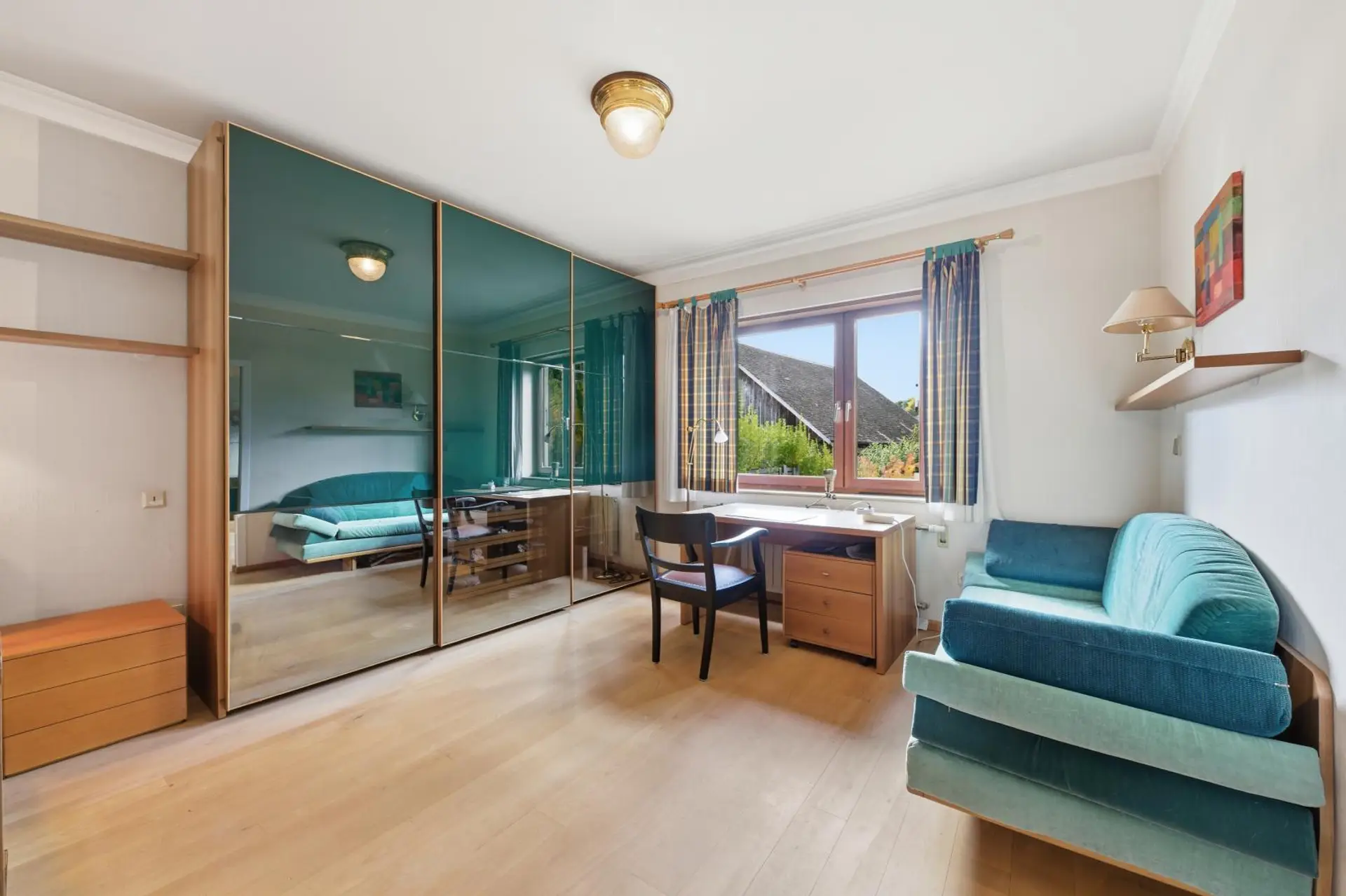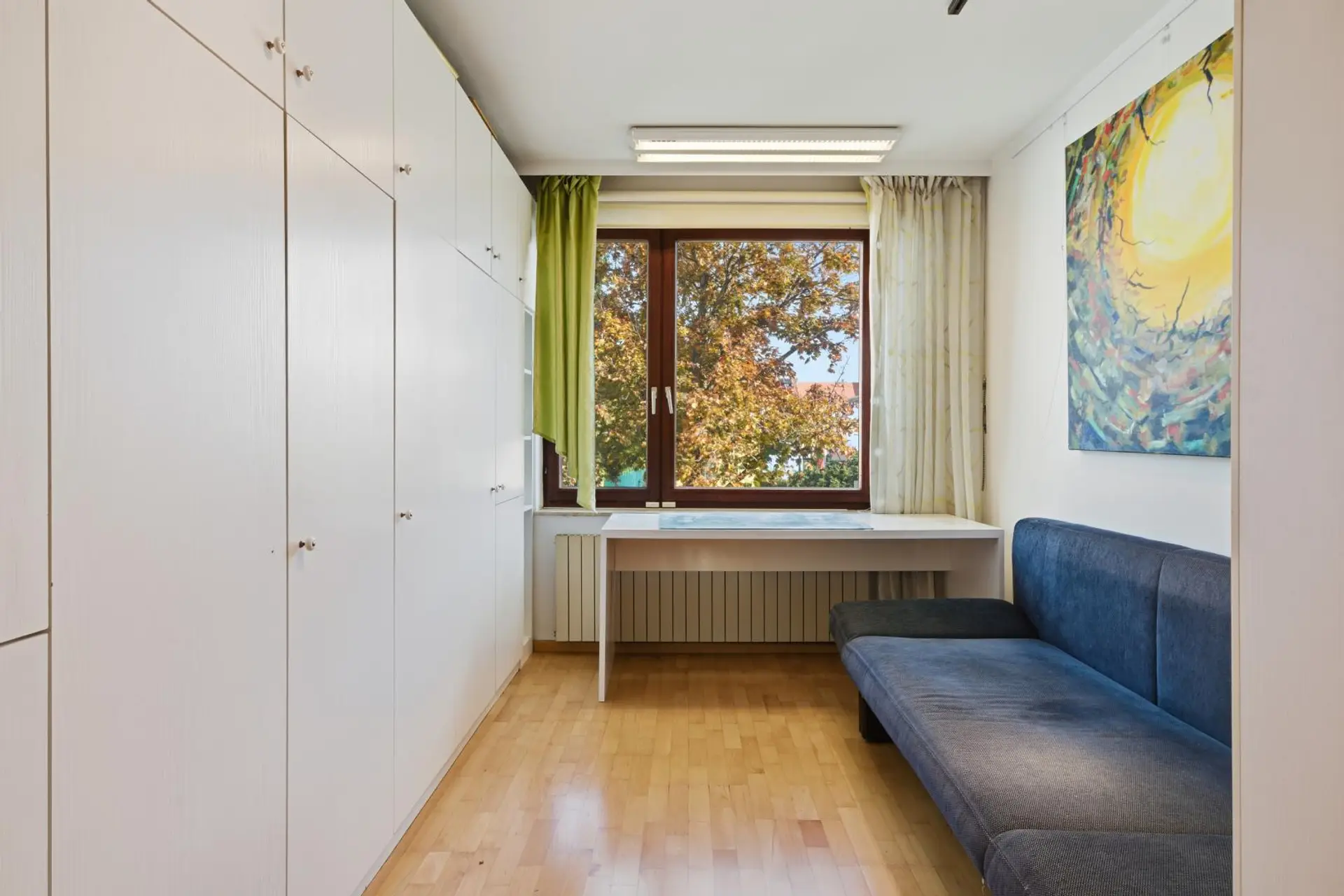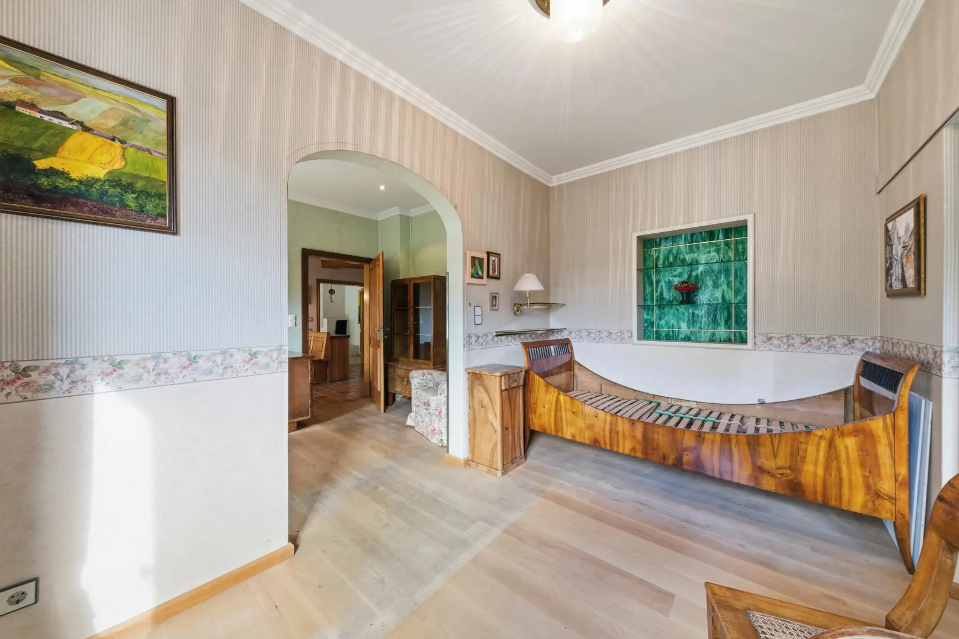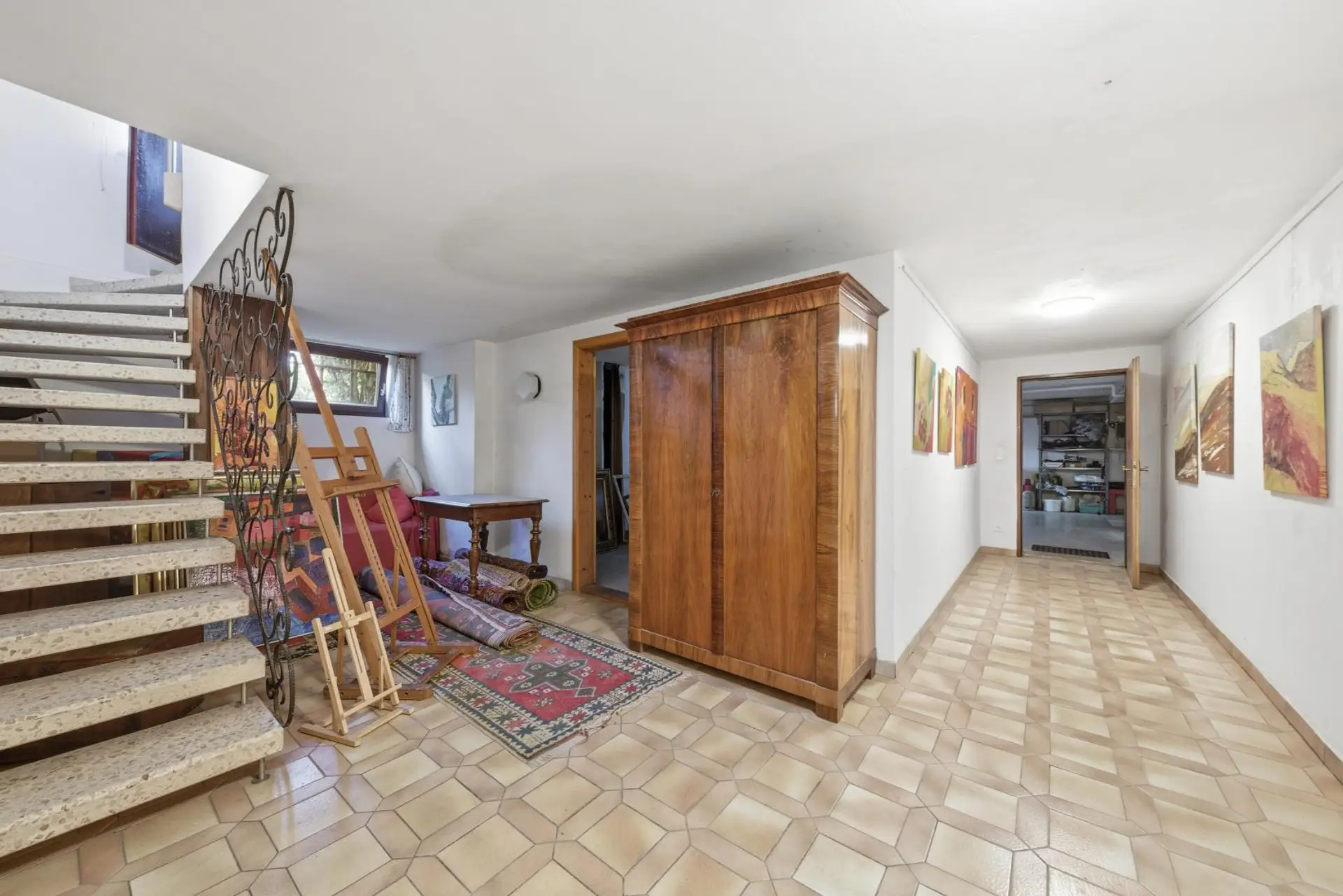 Ebenfalls auf dieser Ebene befinden sich drei Schlafzimmer, ein weiterer Essbereich, eine begehbare Garderobe, ein Badezimmer mit Toilette, eine separate Toilette sowie der einladende Eingangsbereich. Die gut durchdachte Raumaufteilung im Kellerbereich bietet nach individueller Adaptierung sogar die Möglichkeit einer teilweisen Nutzung als Arbeits- oder Atelierbereich – wie es in der Vergangenheit bereits erfolgreich umgesetzt wurde.