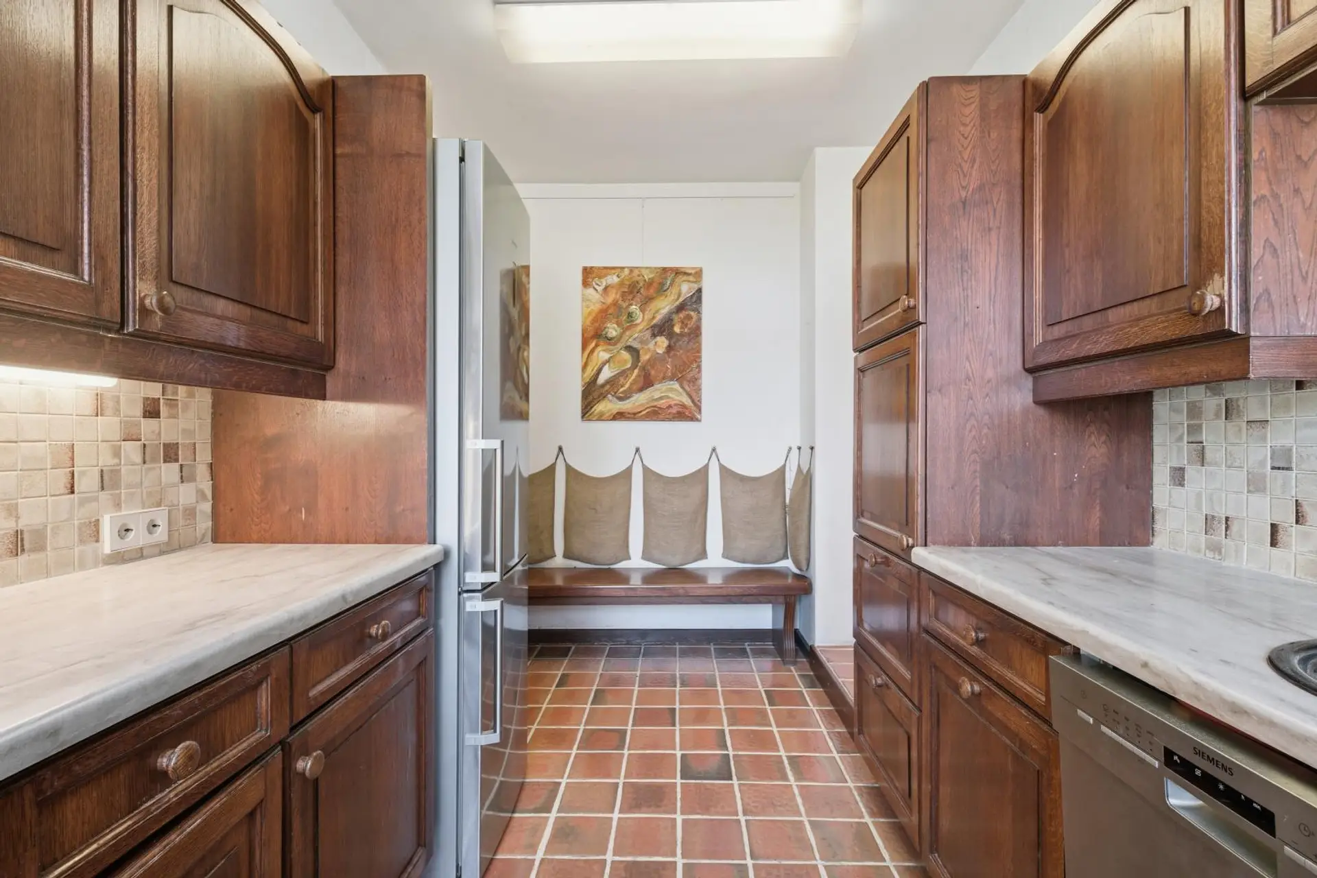 Beim Betreten des Wohntrakts wird man sofort von einem traumhaften Wohn- und Essbereich empfangen, der durch seinen großzügigen Grundriss und den herrlichen Blick in den einzigartigen Garten besticht. Die Küche zählt zu den zentralen Herzstücken dieses Domizils.