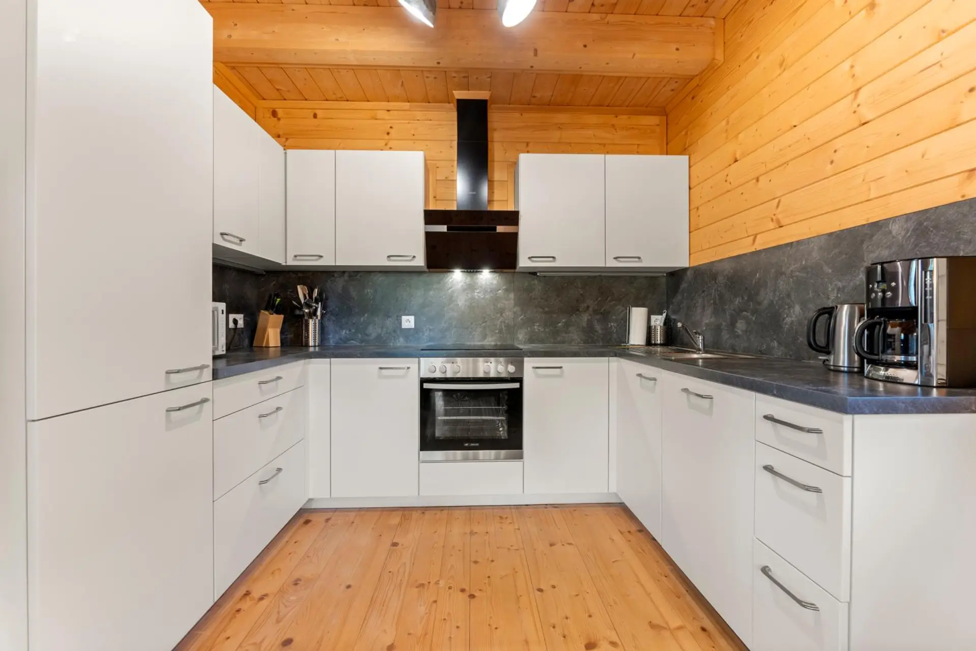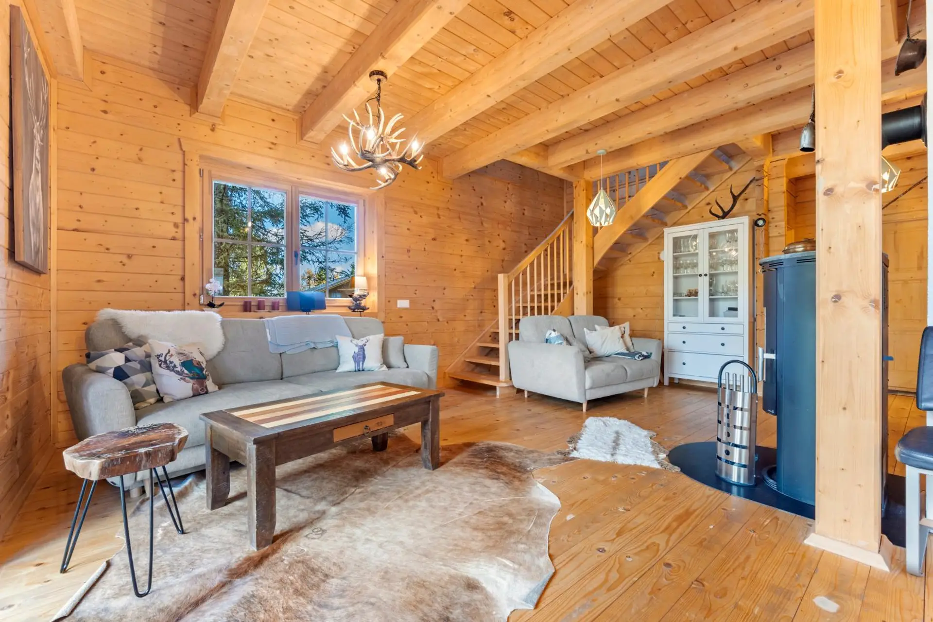 Beheizt wird das Chalet mittels Infrarotheizkörpern, elektrischer Fußbodenheizung im Vorraum und den Bädern sowie über den Schwedenofen im Wohnbereich.