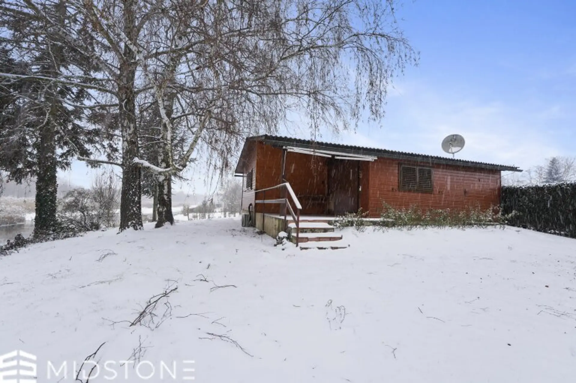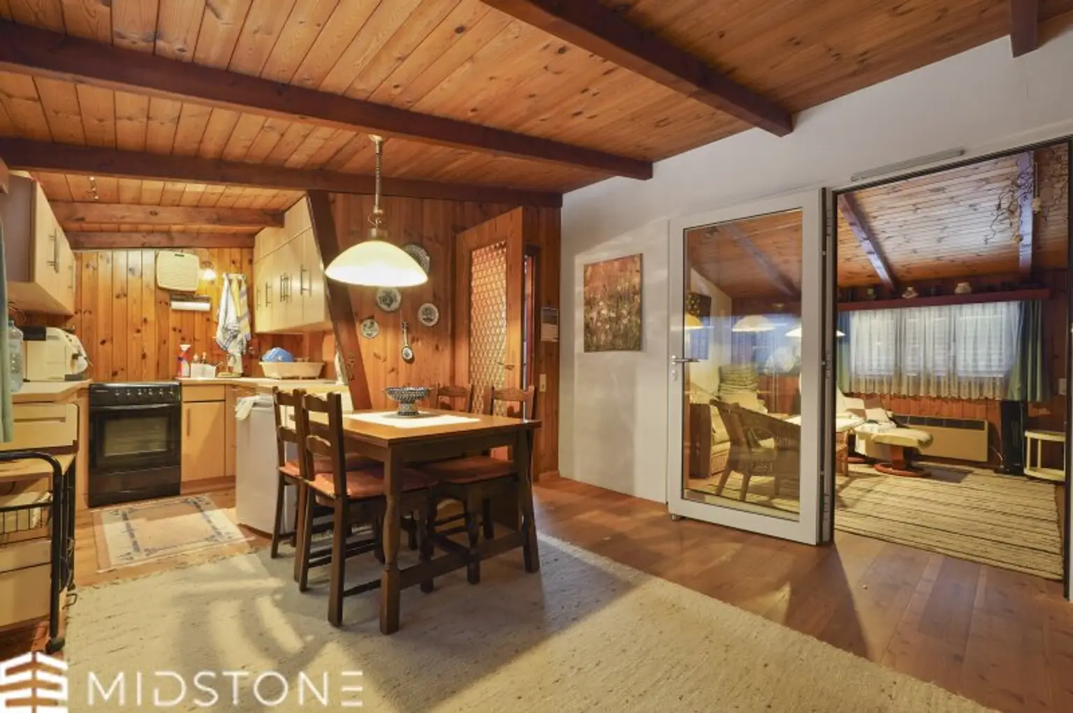 Der Außenbereich mit Terrasse und Garten bietet ausreichend Platz für sonnige Frühstücke, entspannte Nachmittage oder gesellige Abende im Grünen. Das Haus steht auf zwei Pachtparzellen mit 189 m² und 169 m², was zusätzlichen Spielraum für Gartengestaltung oder Freizeitaktivitäten bietet. Die leicht erhöhte Lage sorgt für einen schönen Fernblick über die Umgebung und ergänzt das Erholungsgefühl perfekt.