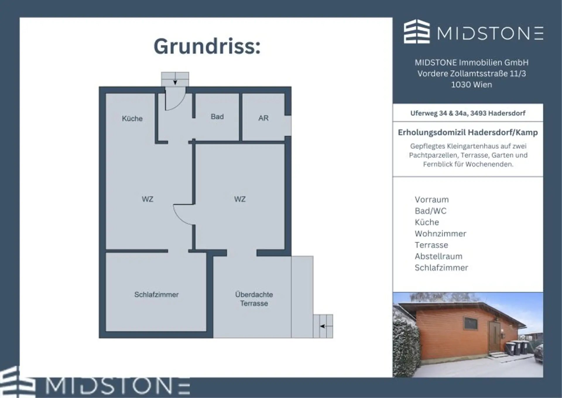 Die Liegenschaft wird als Superädifikat auf Pachtgrund geführt und darf ausschließlich zu Erholungszwecken genutzt werden. Ein ganzjähriges Wohnen ist nicht gestattet. Für die weitere Nutzung ist ein neuer Pachtvertrag mit der Gemeinde abzuschließen, der durch den Gemeinderat genehmigt werden muss. Der Kaufpreis für das Superädifikat sind 89.000€ und die jährliche Pacht ist lt. aktuellem Pachtvertrag ca. 261,34€ ohne Strom, Wasser, Kanal welche separat vorgeschrieben werden.