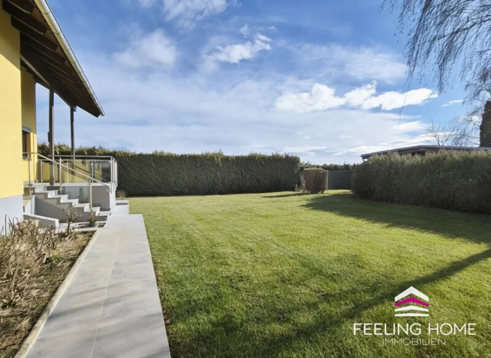 Der gepflegte Garten des 593 m² großen Grundstücks ist eine echte Wohlfühlzone: Ob entspannte Grillabende auf der Terrasse oder ruhige Stunden im Grünen – hier findet jeder seinen Lieblingsplatz. Ein eigener Brunnen mit Kalkanlage stellt die ideale Gartenbewässerung sicher und spart gleichzeitig Trinkwasser.