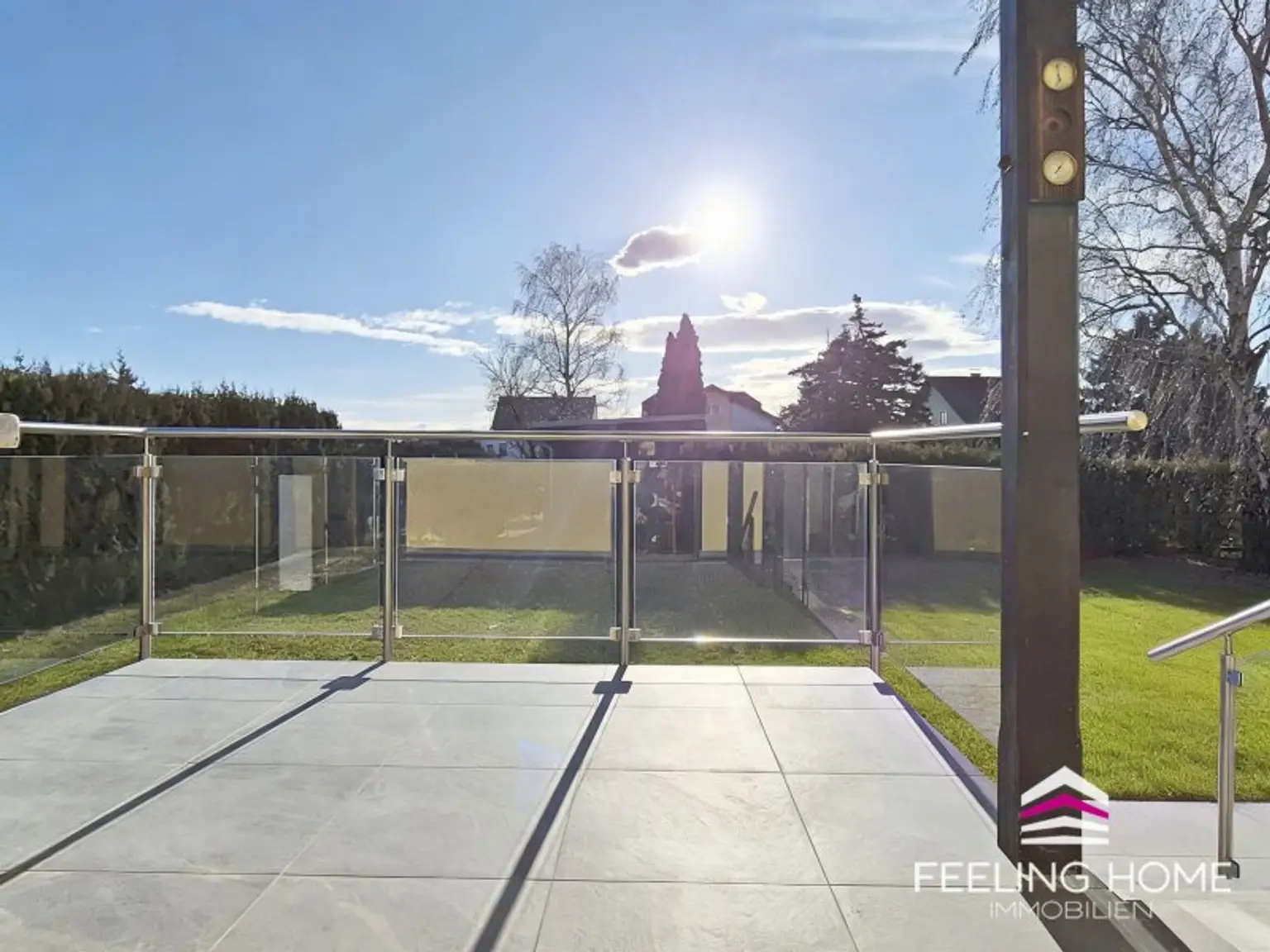 * Südost-ausgerichtete, geräumige Terrasse mit modernem Glas-Edelstahl-Geländer