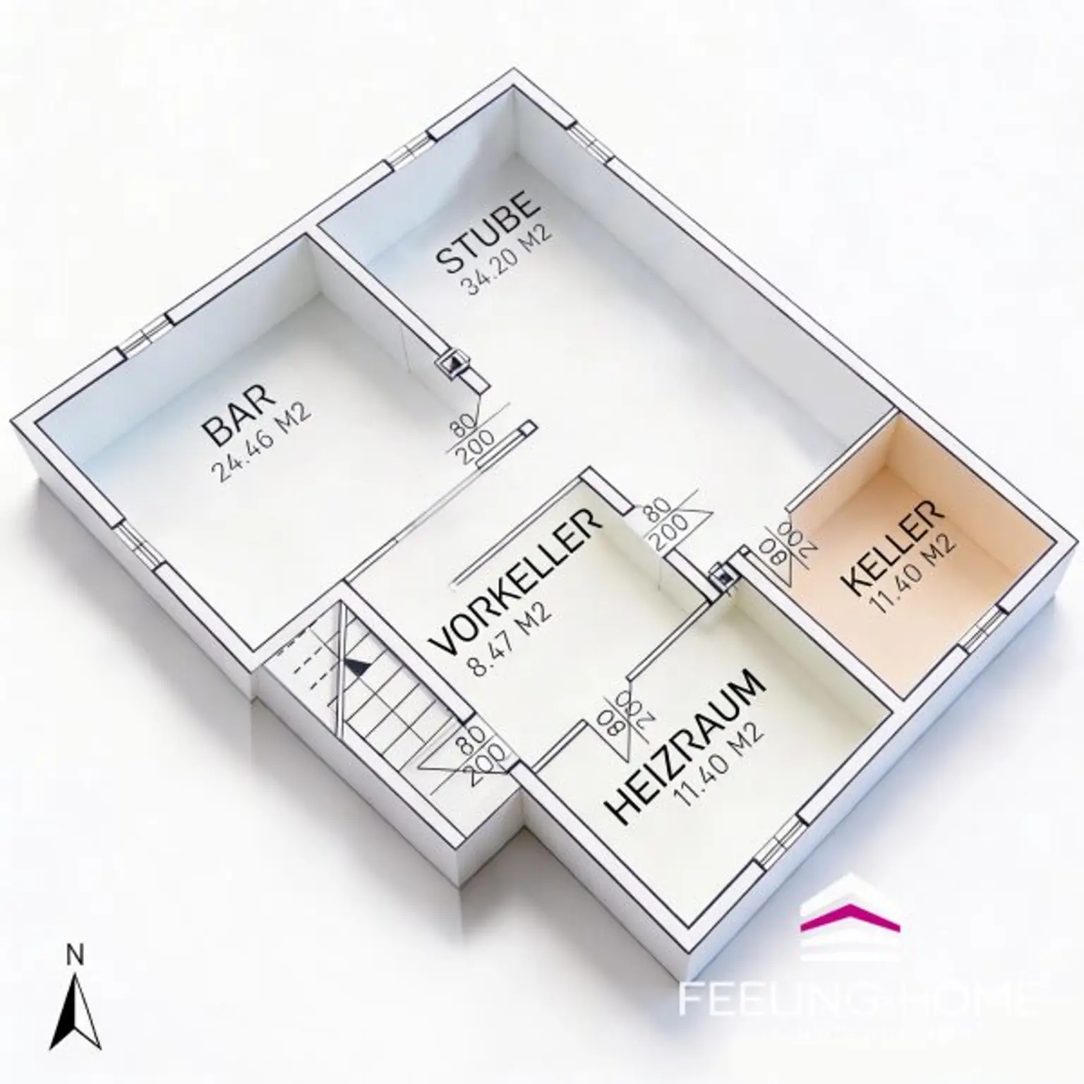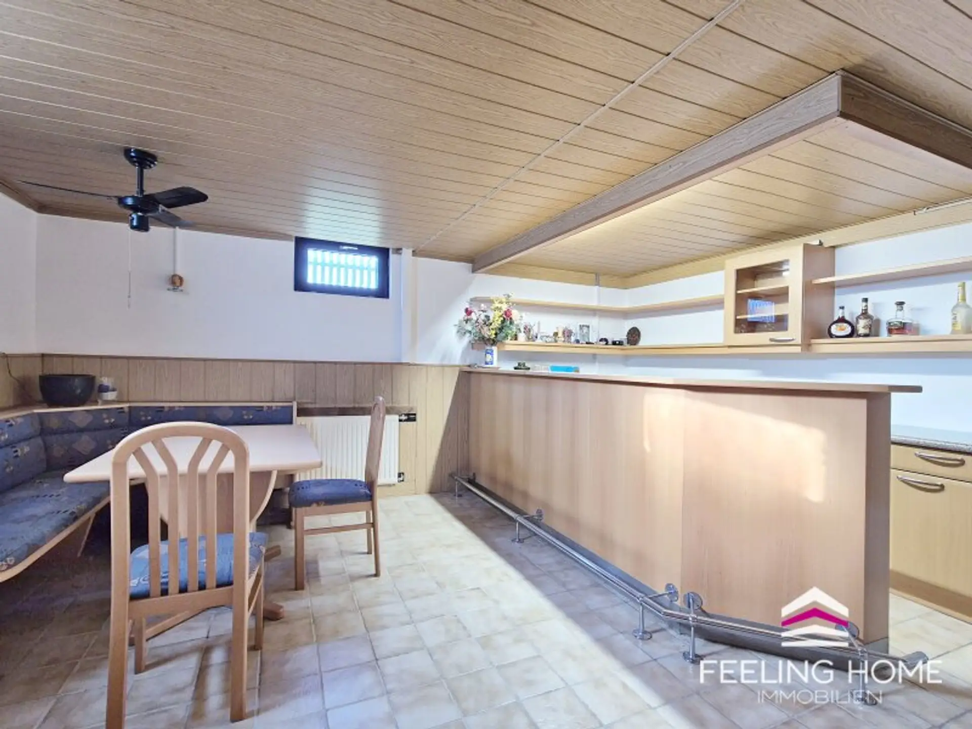 Der Vollkeller mit ca. 87,82 m² bietet weit mehr als nur Stauraum. Eine vollständige Bar, eine große und einladende Kellerstube für gesellige Abende und private Partys sowie ein Heizraum und ein Stauraum gestalten diesen Bereich zu einem echten Mehrwert der Liegenschaft.