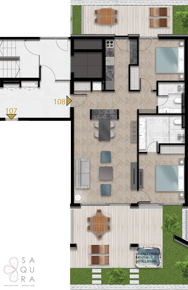 Besonderheit: Installationsmöglichkeit für einen Jacuzzi.