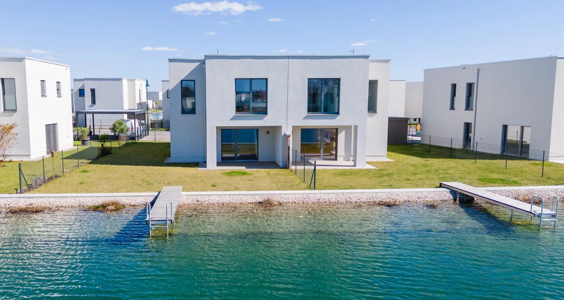 Jedes Haus steht auf einer eigenen Parzelle - Sie kaufen somit Alleineigentum -, hat direkten Seezugang, Terrassen, Gartenflächen und wird in schlüsselfertiger Ausführung übergeben. Stilvolles Design, zeitlose Eleganz, Nachhaltigkeit und Qualität ist allen gemein!