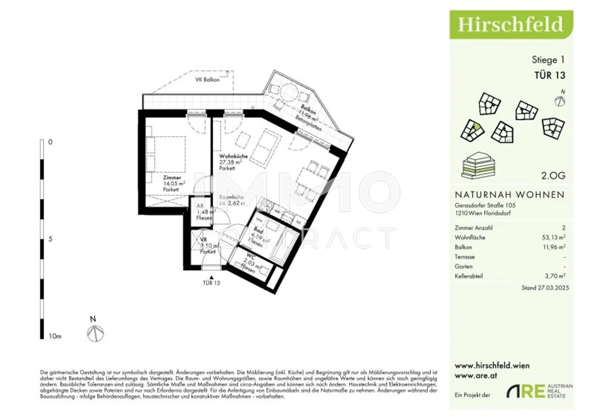 Am Rande eines weitläufigen Grünzugs, der sich bis zum Bisamberg erstreckt, entsteht im naturnahen Hirschfeld ein einzigartiges Wohnquartier: Auf drei Bauplätzen entwickelt sich ein modernes Architektur-Ensemble mit elf Gebäuden und rund 440 Wohnungen – ideal für alle, die Ruhe im Grünen mit urbaner Lebensqualität verbinden möchten.