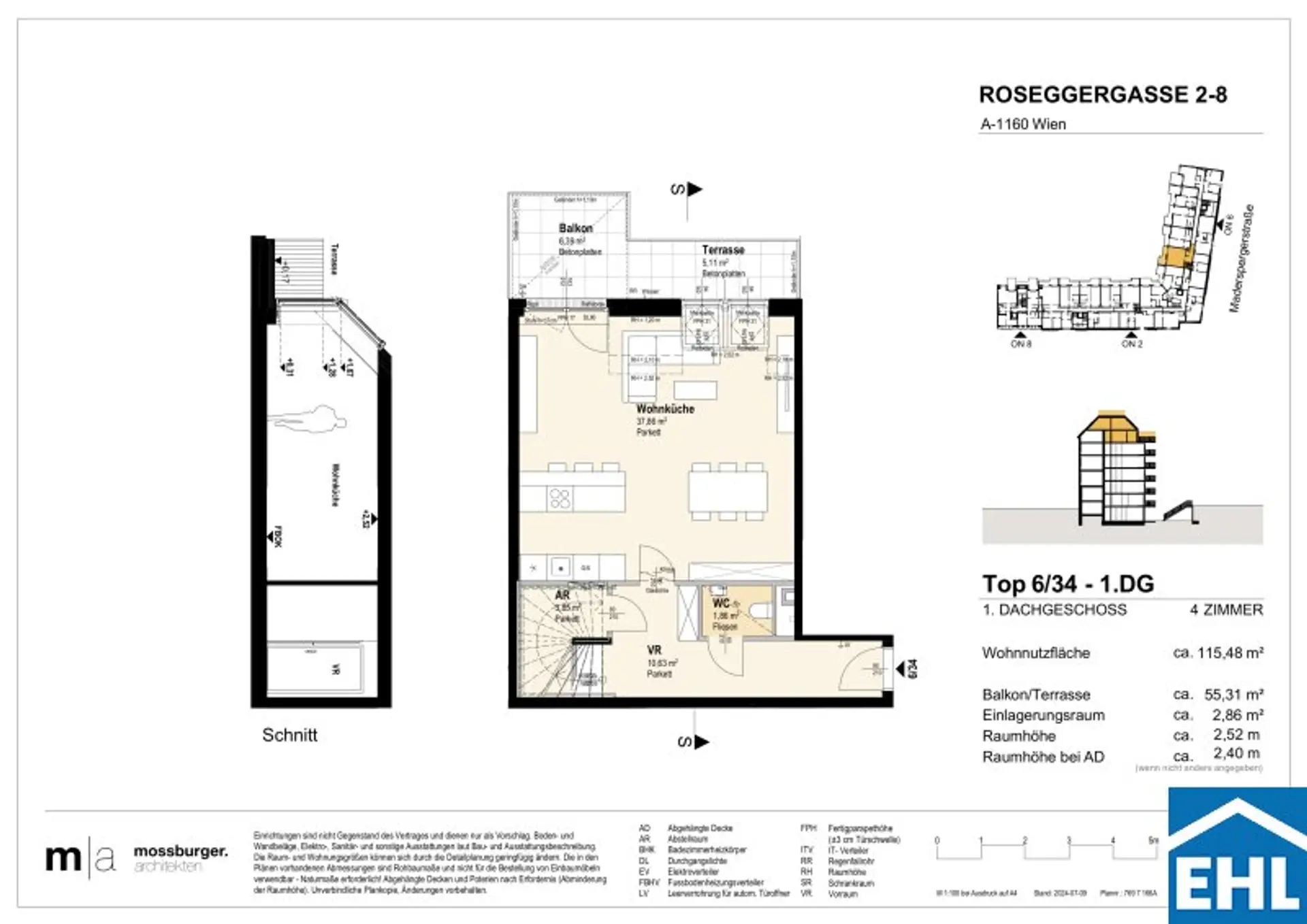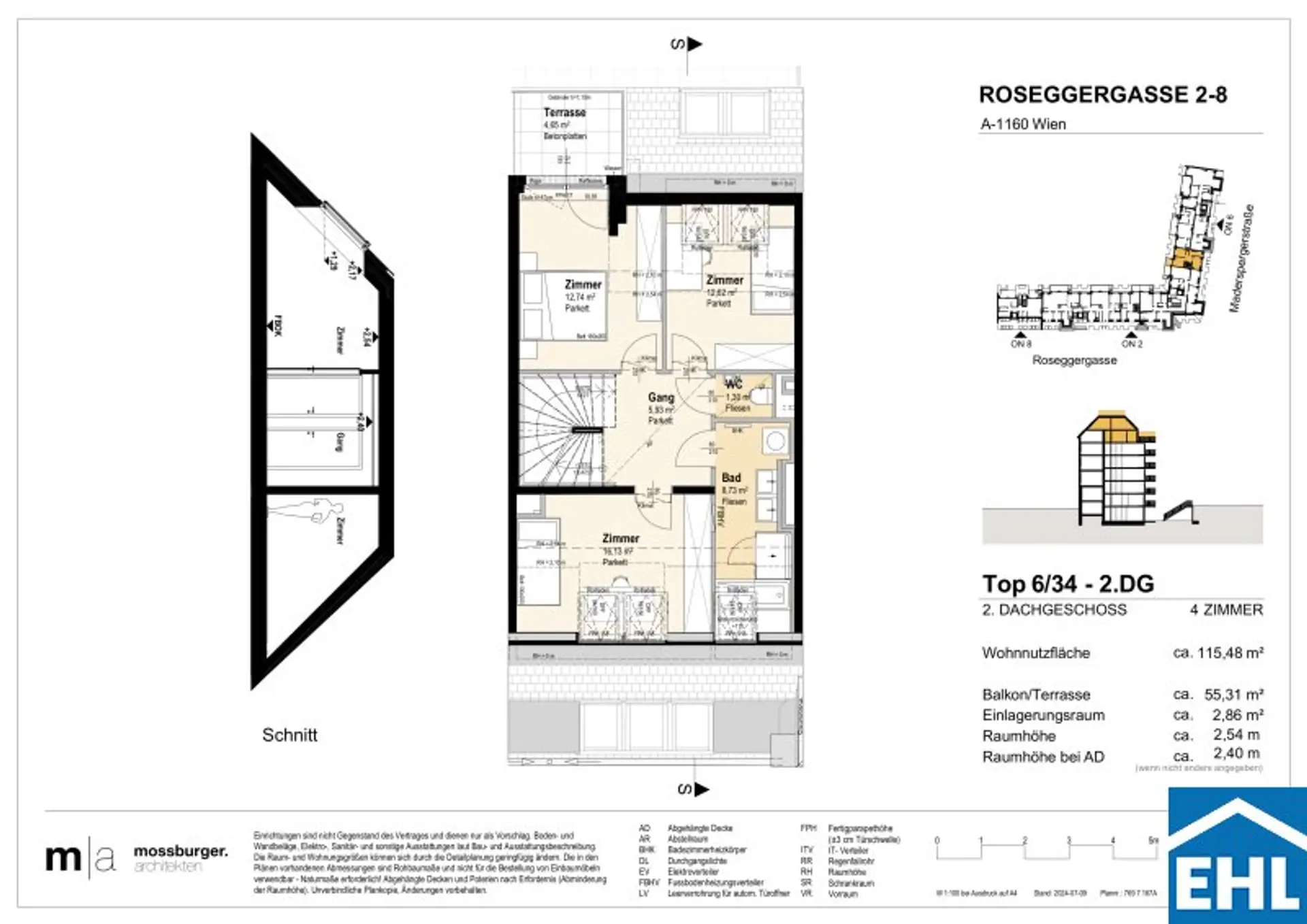 In der Roseggergasse 2–8, unweit des Wilhelminenbergs, entstehen 124 hochwertige Eigentumswohnungen. Die Wohnflächen reichen von ca. 39 m² bis 245 m² und bieten Grundrisse mit zwei bis sechs Zimmern – ideal für unterschiedlichste Wohnbedürfnisse.