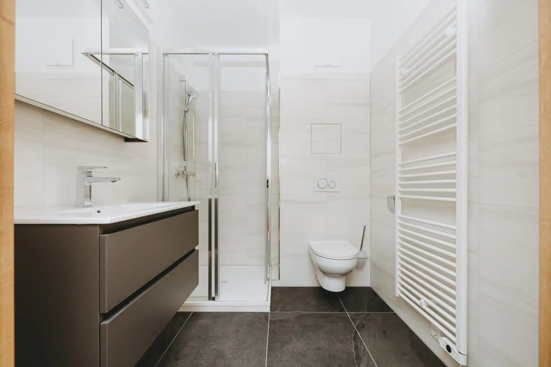 Vorraum mit Garderobe - WC - Stauraum - Badezimmer - Schlafzimmer - komfortables Wohn/Esszimmer mit Zugang auf Balkon - Kellerabteil.