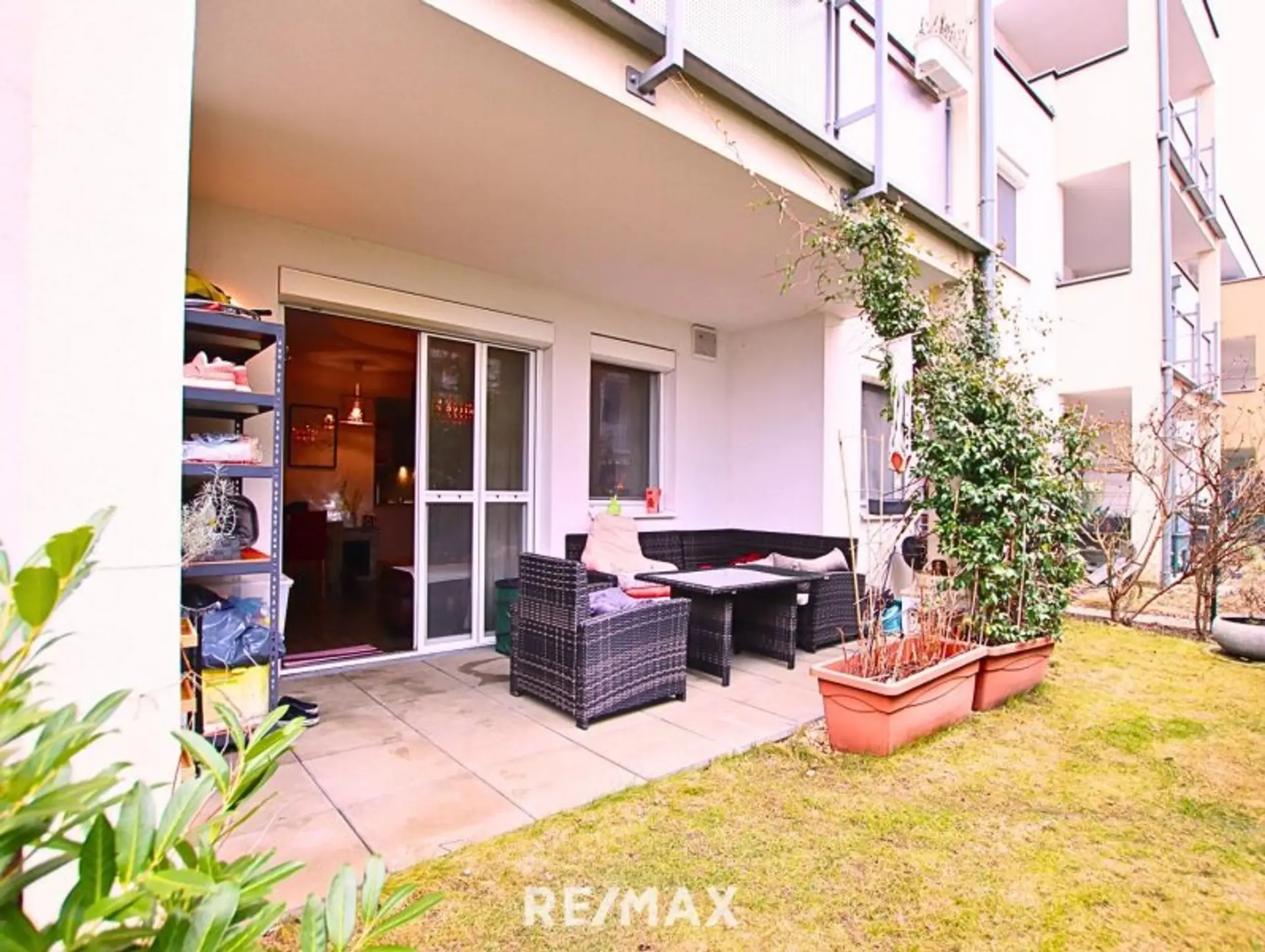 Die ca. 10 m² große Terrasse und der ca. 38 m² Gartenanteil erweitern den Wohnraum ins Freie und bieten Platz für Erholung, Gartenfreuden oder gemütliche Stunden an der frischen Luft.