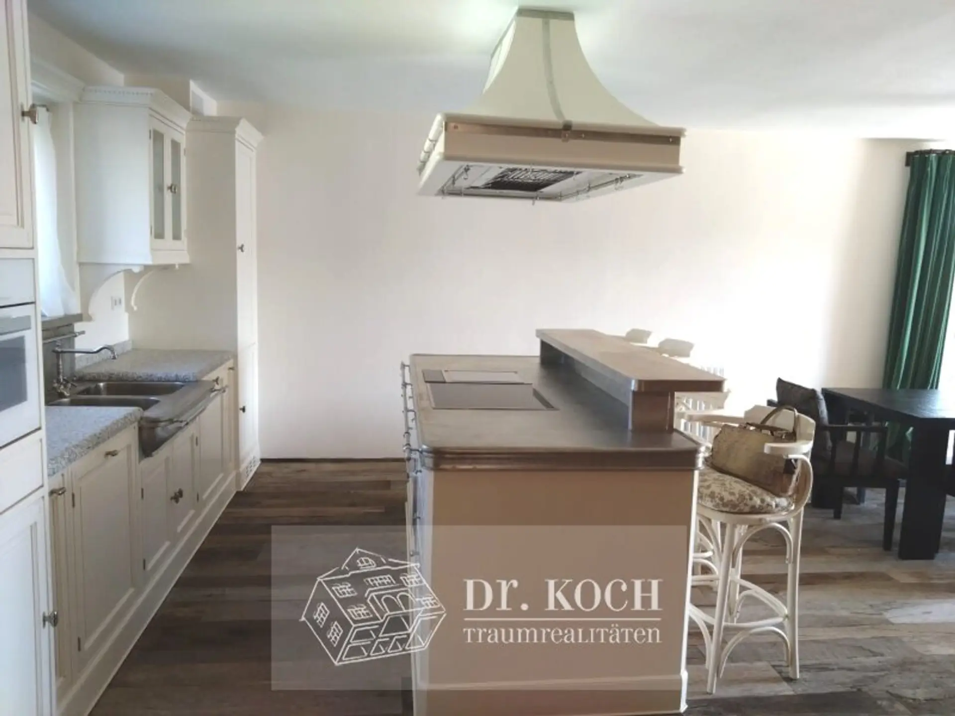 Vollausgestattete italienische Retro-Designer-Küche mit Miele-Geräten, Dunstabzug nach Außen