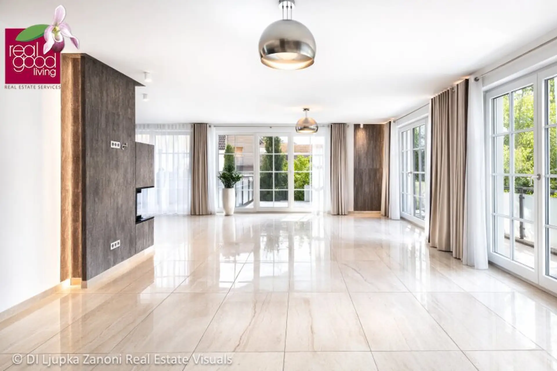 Die Architektur verbindet repräsentative Offenheit mit privaten Rückzugsbereichen – perfekt ausbalanciert.