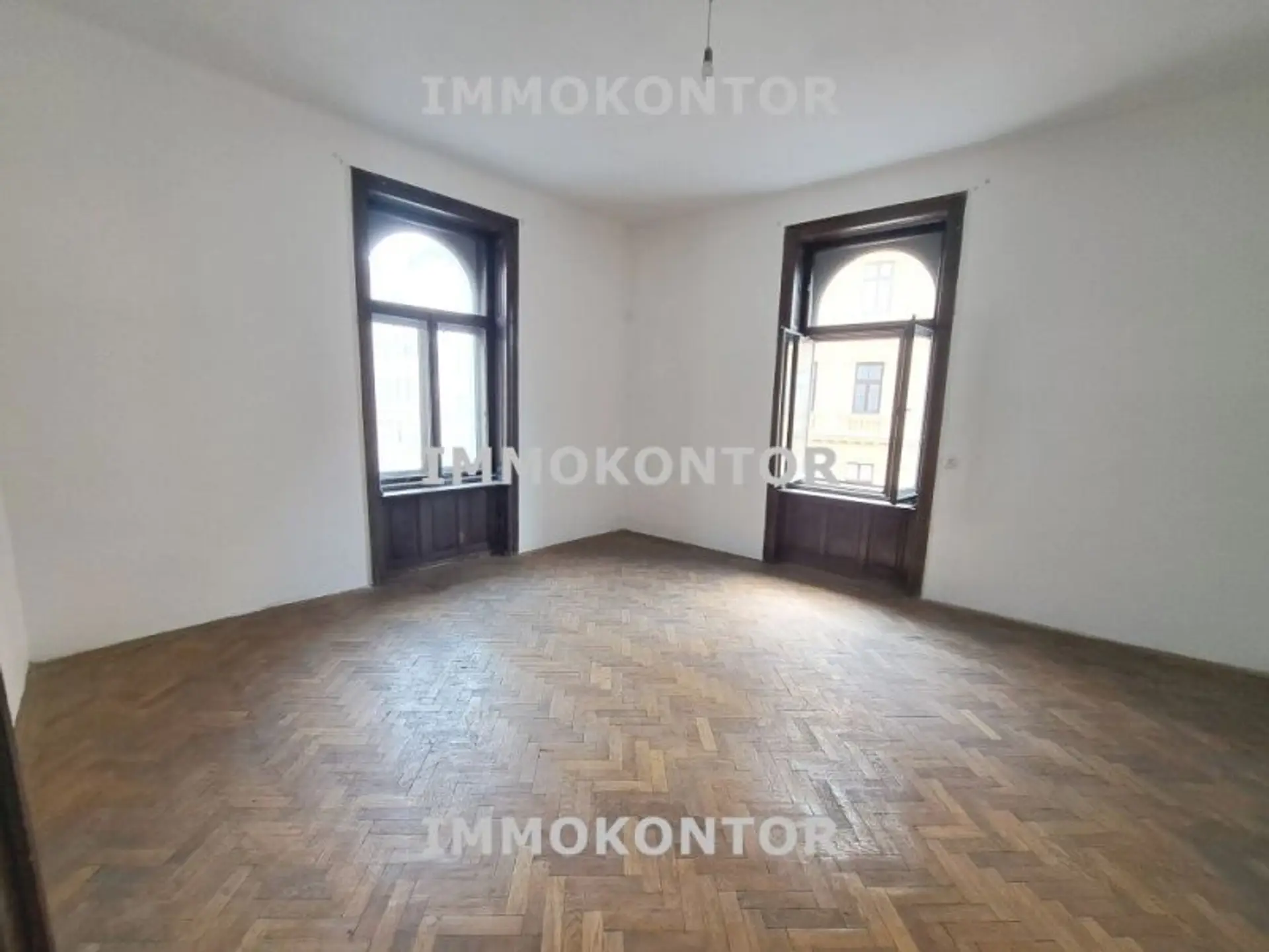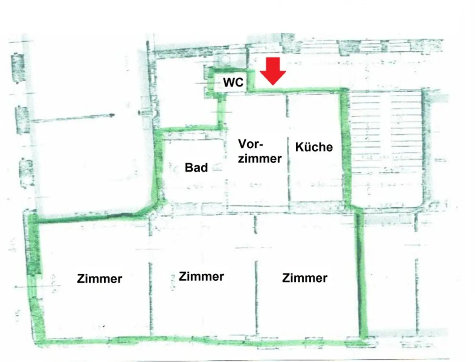 Die Wohnung bietet Potential - drei Zimmer mit jeweils knapp 30m², verbunden durch eine Zimmerflucht. Es gibt neben dem Vorzimmer noch die Räume "Küche", "Badezimmer" und "WC". Natürlich ist bei einer Sanierung die Möglichkeit für Änderungen - warum nicht ein Zimmer als Wohnküche gestalten?