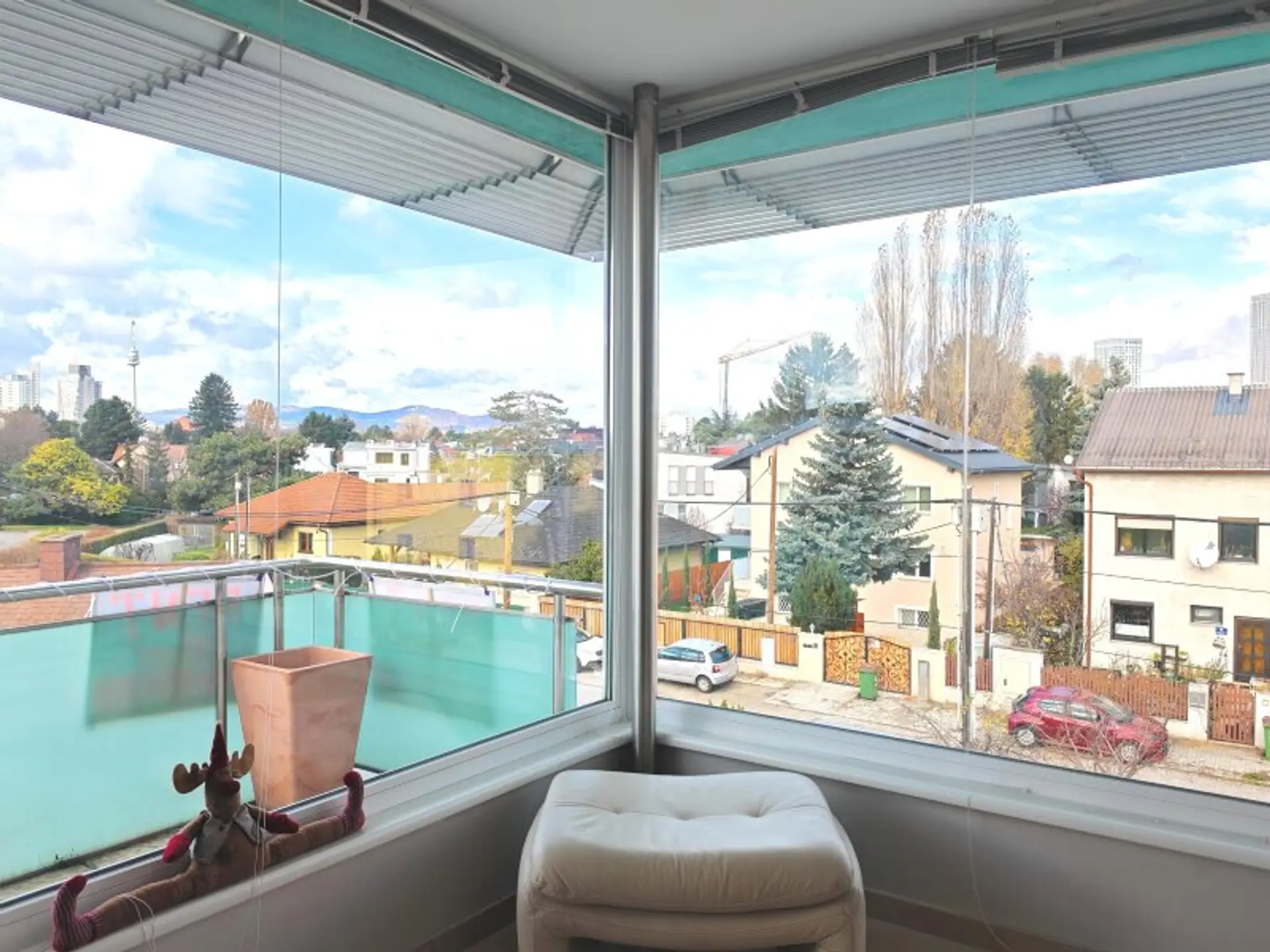 Das Gebäude beherbergt lediglich sieben Wohnungen auf drei Etagen. Diese Wohnung im obersten Stockwerk (ohne Lift) bietet nicht nur einen beeindruckenden Ausblick bis zum Kahlen- und Leopoldsberg, sondern garantiert auch absolute Ruhe. Da sich oberhalb keine weiteren Nachbarn befinden, kann man die Stille und Privatsphäre in vollen Zügen genießen.