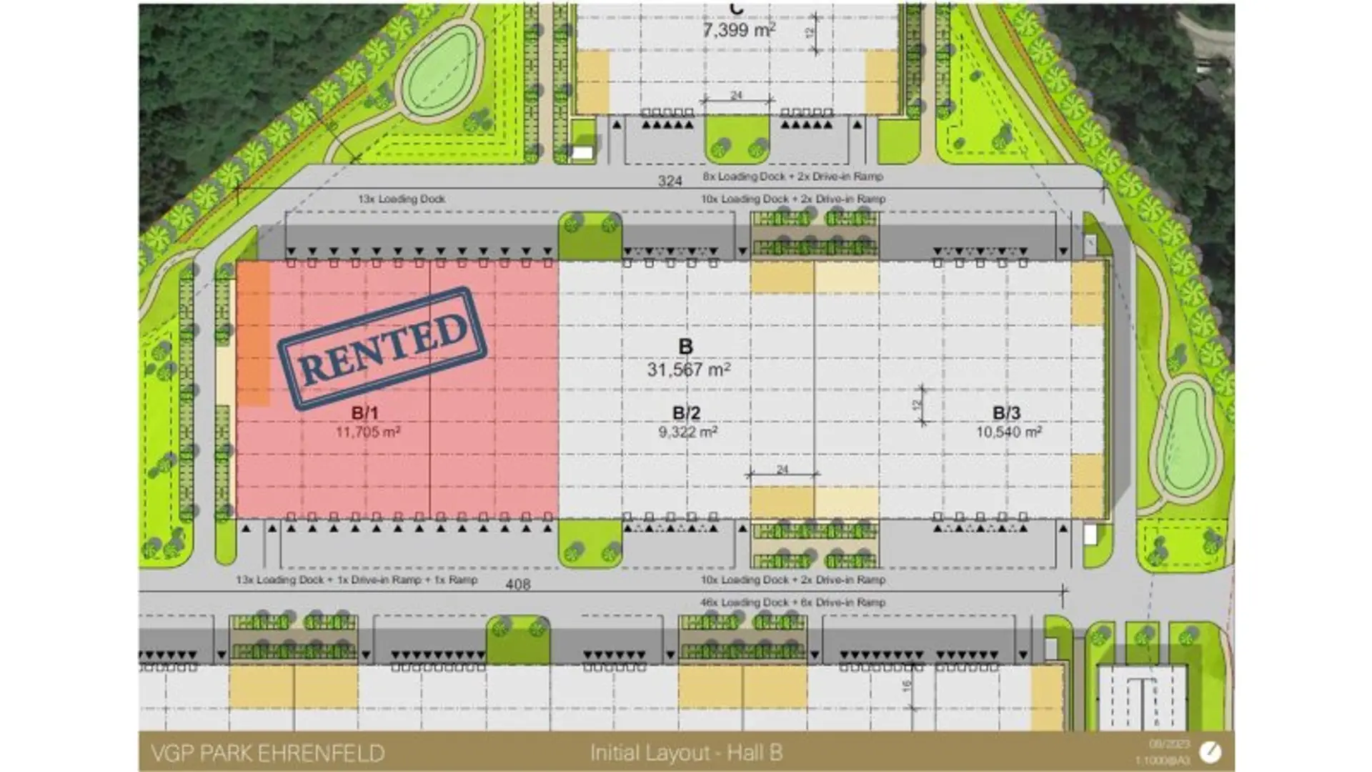 Der VGP Park Ehrenfeld bietet schlüsselfertige Mietflächen, sowohl kleinere Einheiten als auch maßgeschneiderte Lösungen für Industrie-, Logistik- und Gewerbebetriebe mit einer Gesamthallenfläche von knapp 80.000 m².