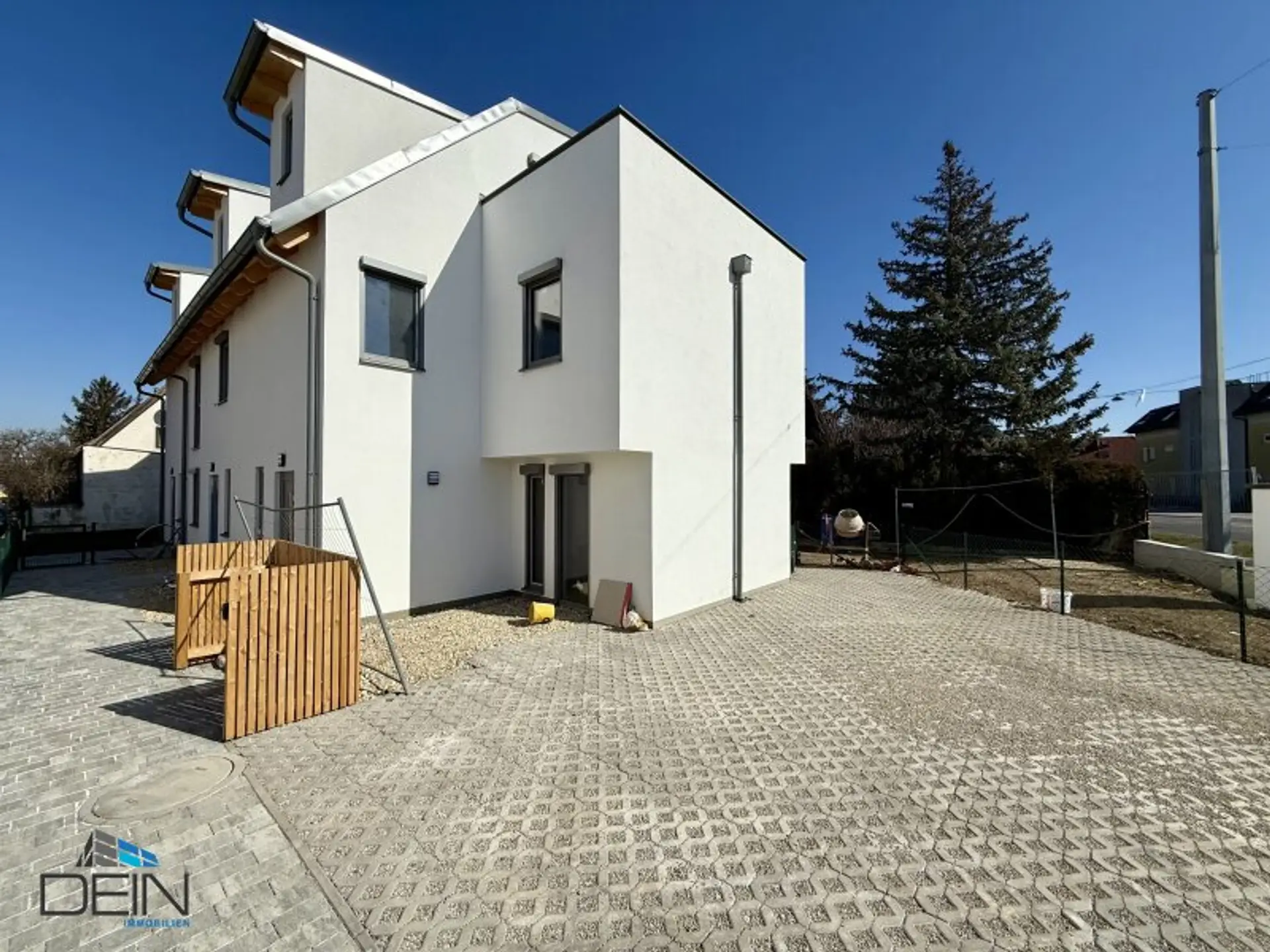 In den Wohn- und Schlafräumen werden hochwertige Eichenparkettböden verlegt worden. Die Nassräume sind mit qualitativen Feinsteinzeugbelägen verfliest worden. Die Heizung erfolgt mittels einer Luftwärmepumpe (Fußbodenheizung). Die Kunststofffenster verfügen über einen integrierten Sonnenschutz. Eine Küche inkl. sämtlicher Geräte ist im Kaufpreis inkludiert. Im Garten ist ein Rollrasen verlegt. Jedem Haus ist ein PKW-Stellplatz zugewiesen.