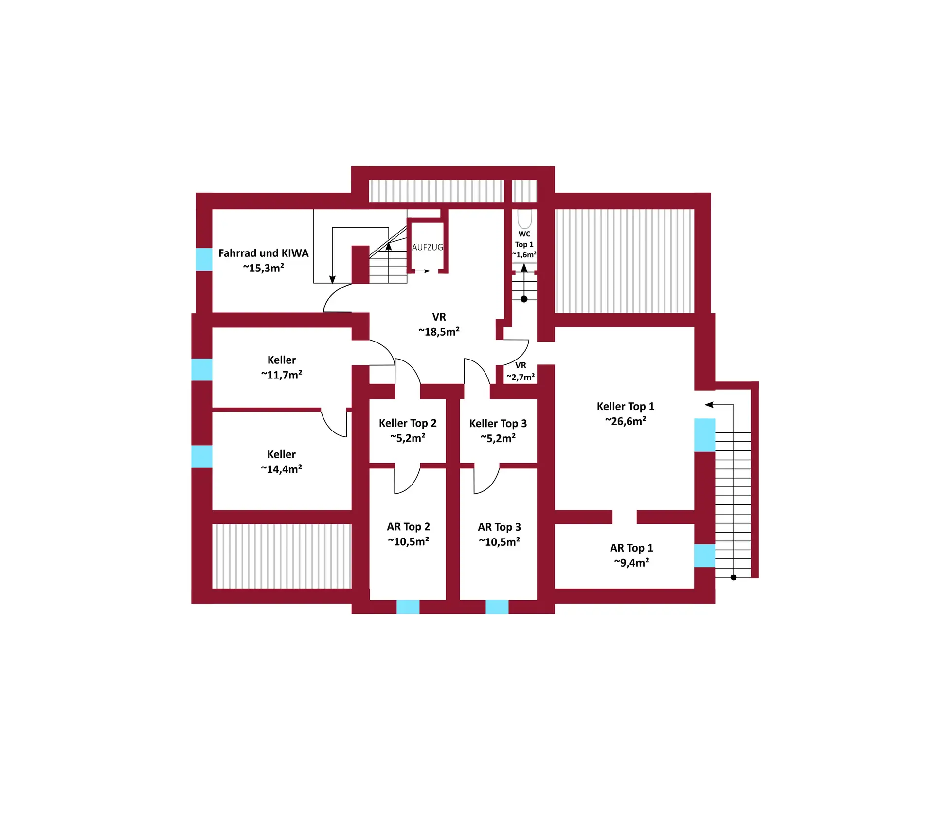 Eigene Kellerabteile, Kinderwagenraum, Fahrradabstellplätze sowie ein Weinkeller