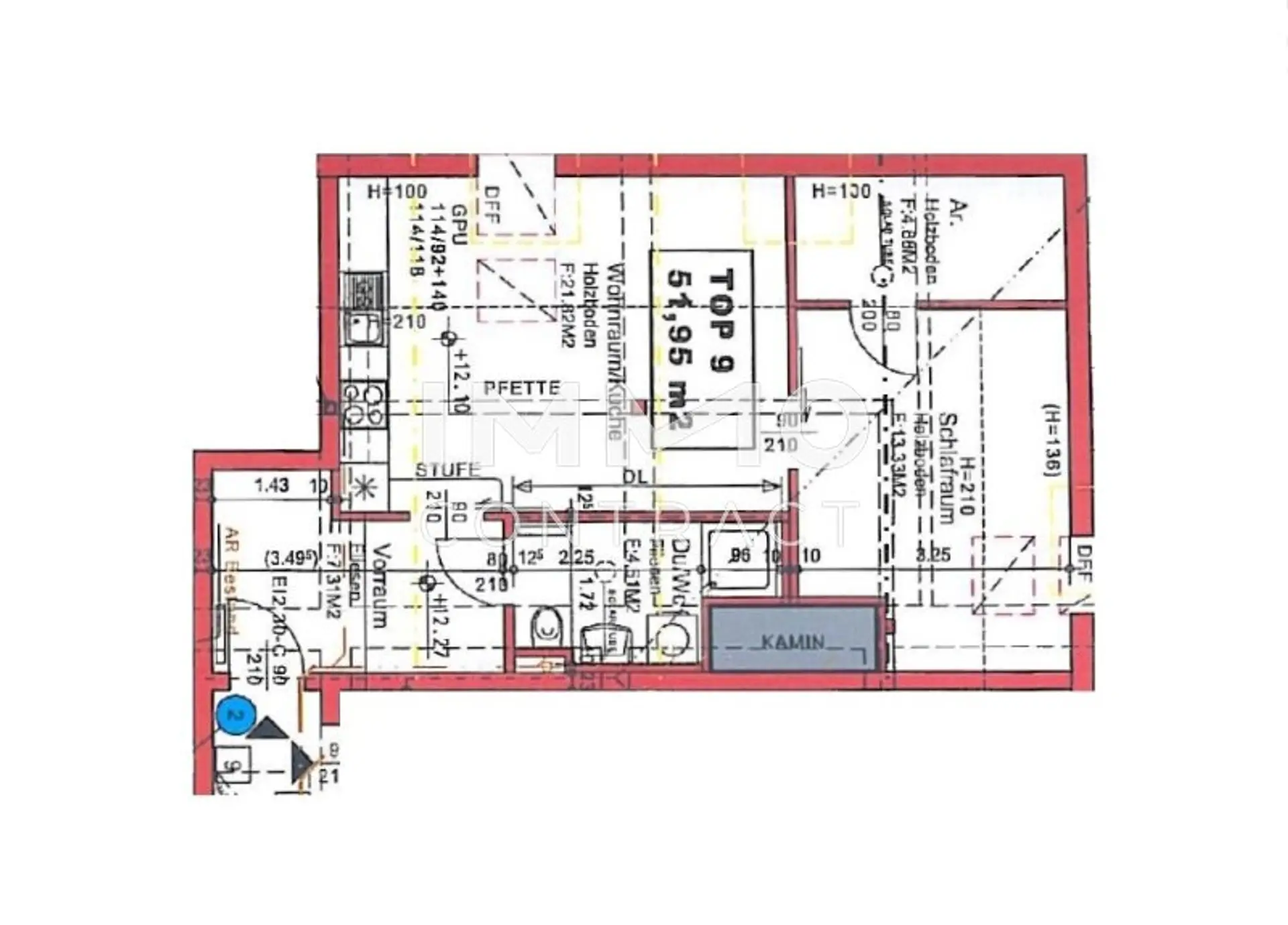 Ausstattung: Die Böden sind mit Parkett und Fliesen ausgestattet. Die Fenster sind aus Kunststoff und verfügen über Rollläden. Der Küchenbereich ist mit einer Einbauküche (inkl. E-Geräte) möbliert. Das Badezimmer ist unter anderem mit einer Dusche und einem Waschmaschinenanschluss ausgestattet. Die Wohnung verfügt über eine Zentralheizung.