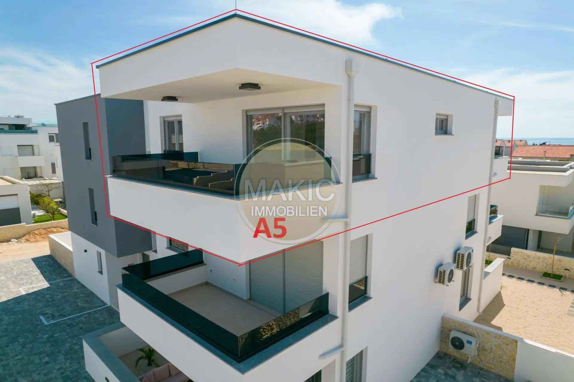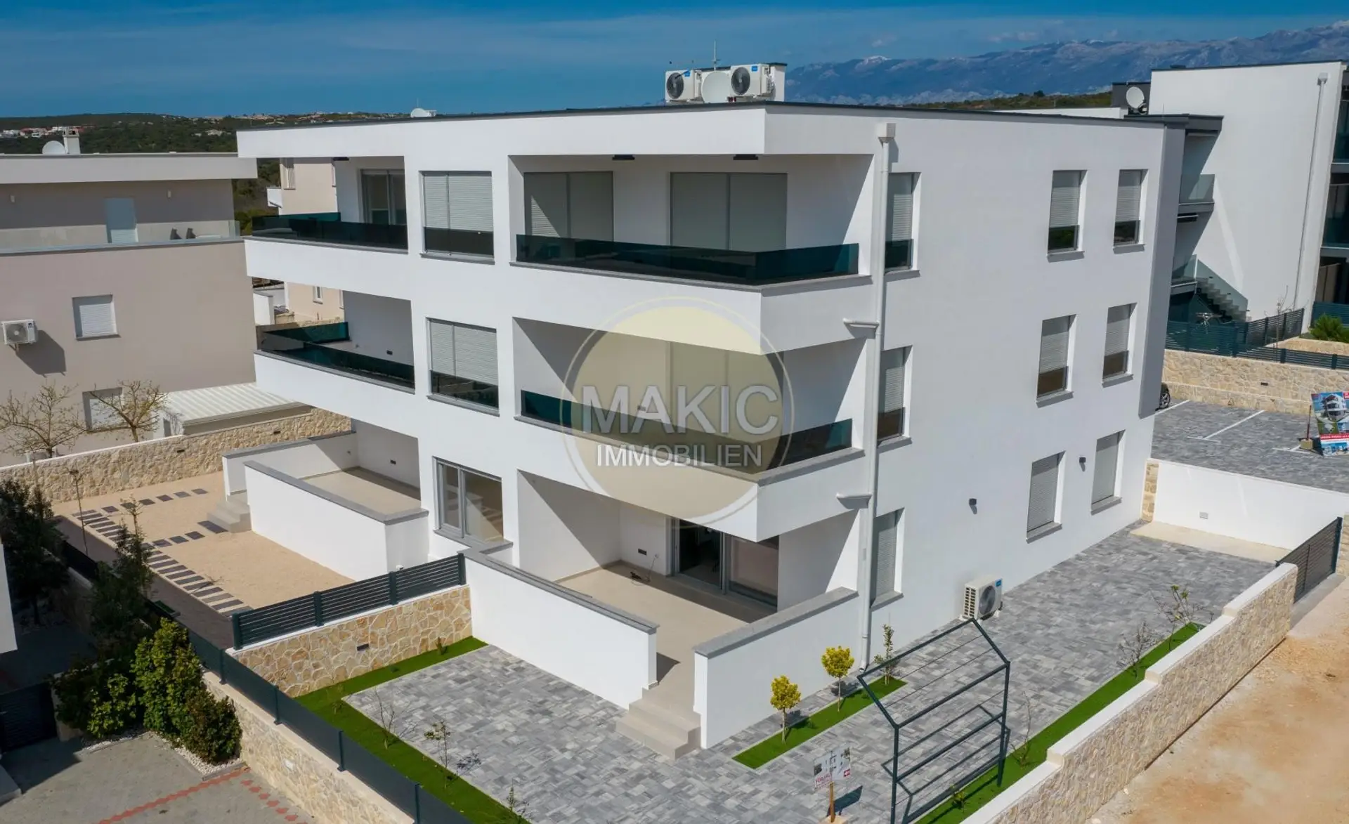 Ein modernes STÄDTISCHES GEBÄUDE MIT 8 WOHNUNGEN zum Verkauf in attraktiver Lage in einer neuen Elite-Siedlung neben Luxusvillen in Novalja (Insel Pag). Es befindet sich in einer prestigeträchtigen Lage, nur 150 m vom Meer und dem beliebten Strand "Babe" entfernt. Das Zentrum von Novalja und berühmte Restaurants erreichen Sie zu Fuß entlang der Promenade in etwa 20 Minuten. Die Entfernung zum Geschäft, Bäckerei und Café beträgt 200 m. Die Terrasse der Wohnung bietet einen Panoramablick auf das Meer. Erstklassige Konstruktion und luxuriöse Dekoration machen unsere Apartments zu einem perfekten Investitions- und Urlaubsort.