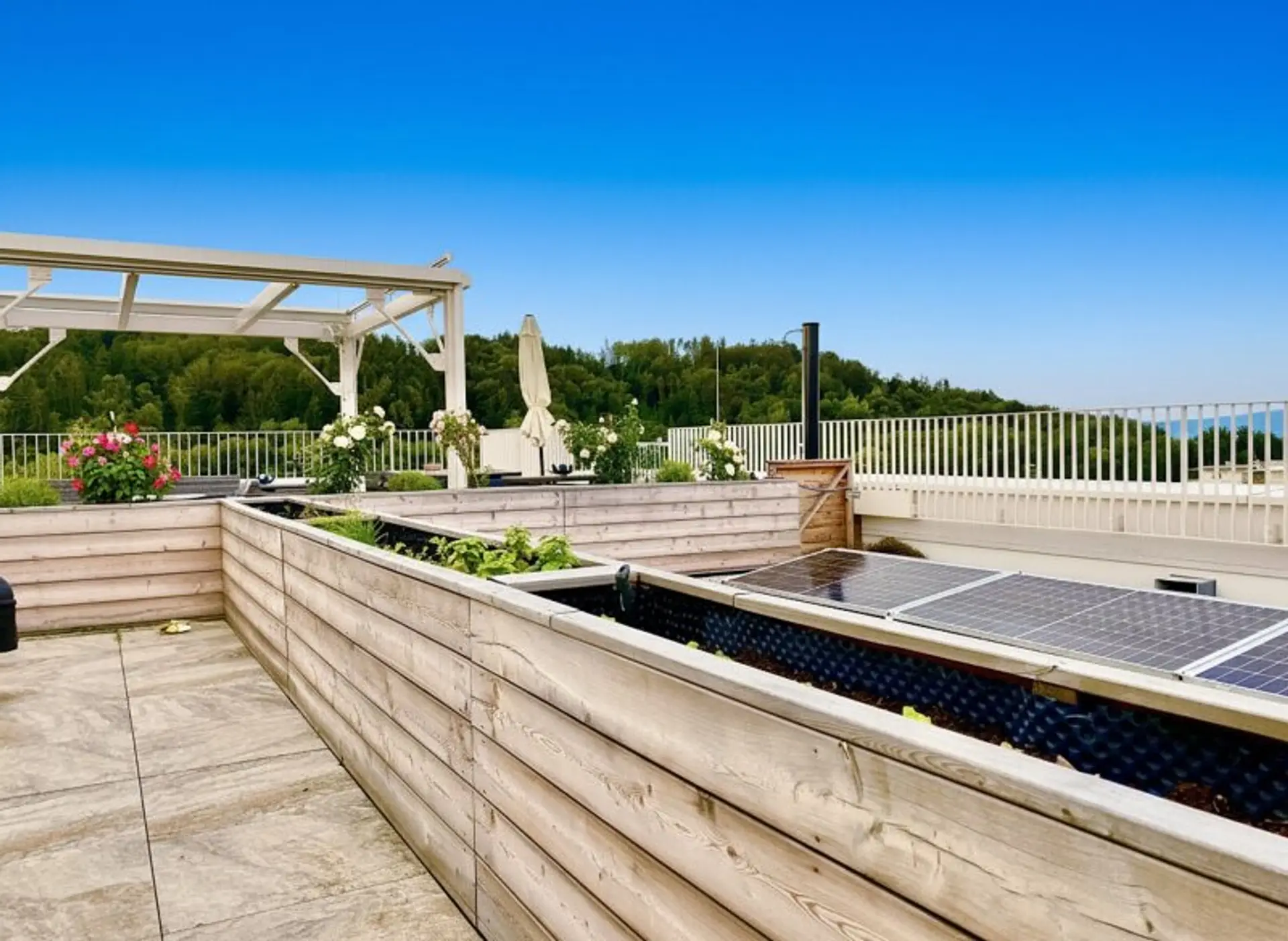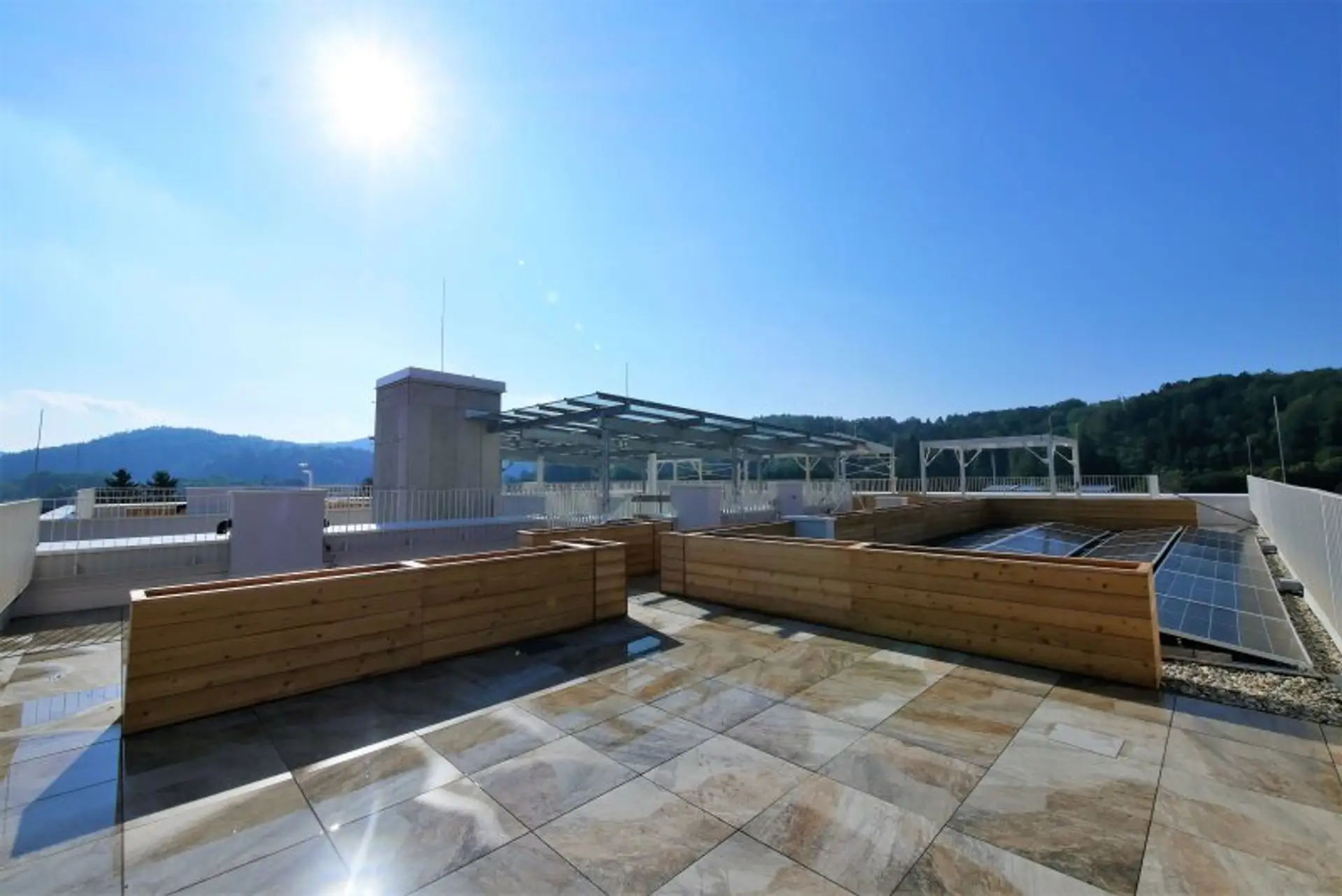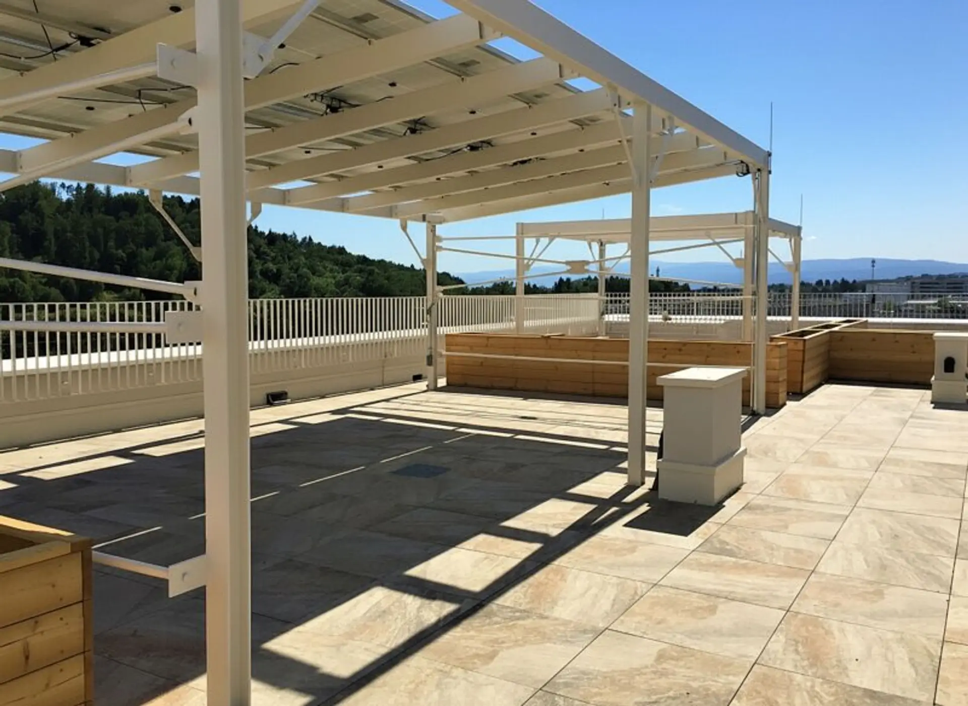 * Frei zugängliche Dachterrasse mit Pergola, Sitzgelegenheiten & Begrünung