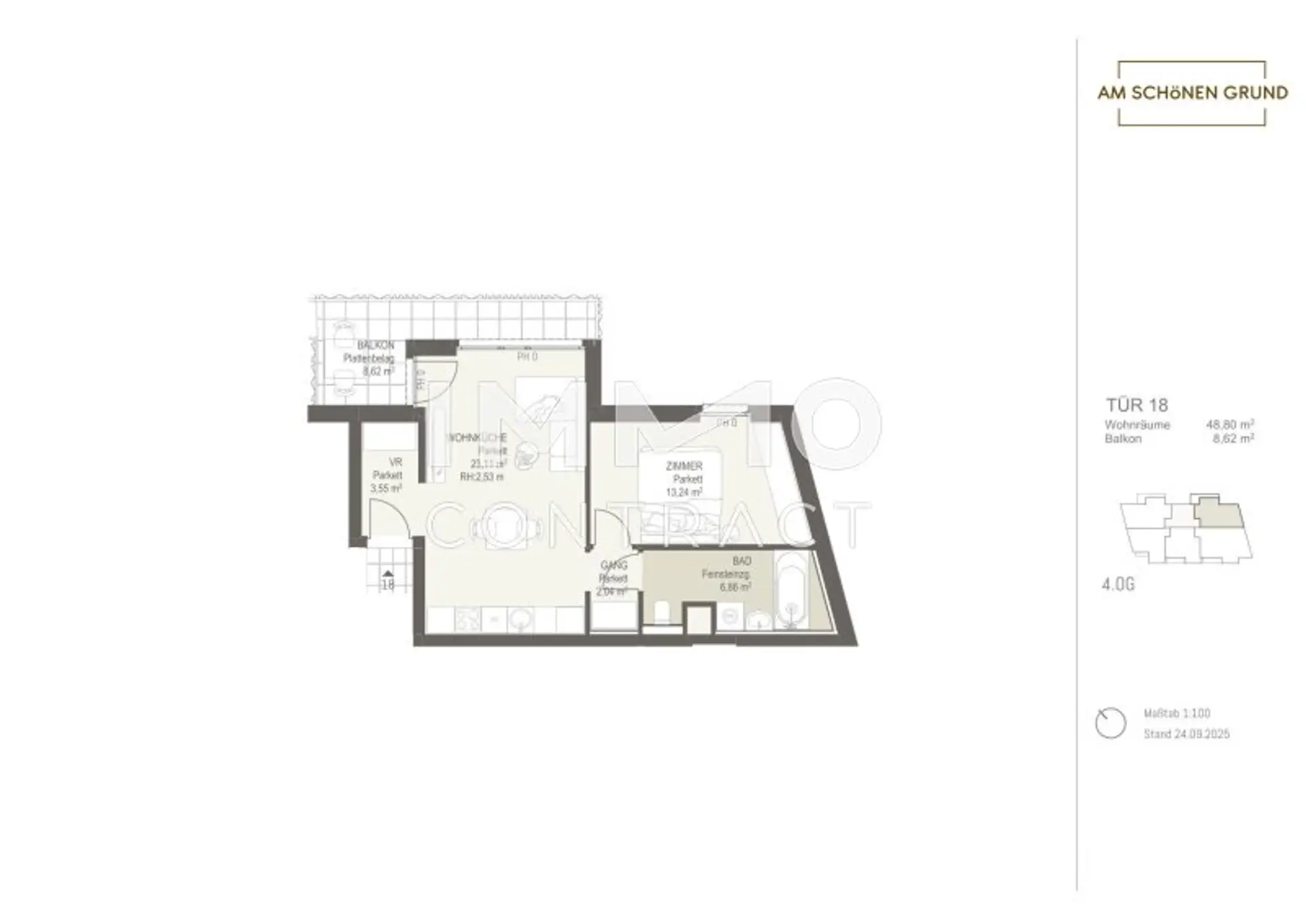 Fußläufige Anbindung an die U-Bahn U2 Hardeggasse (950 m),