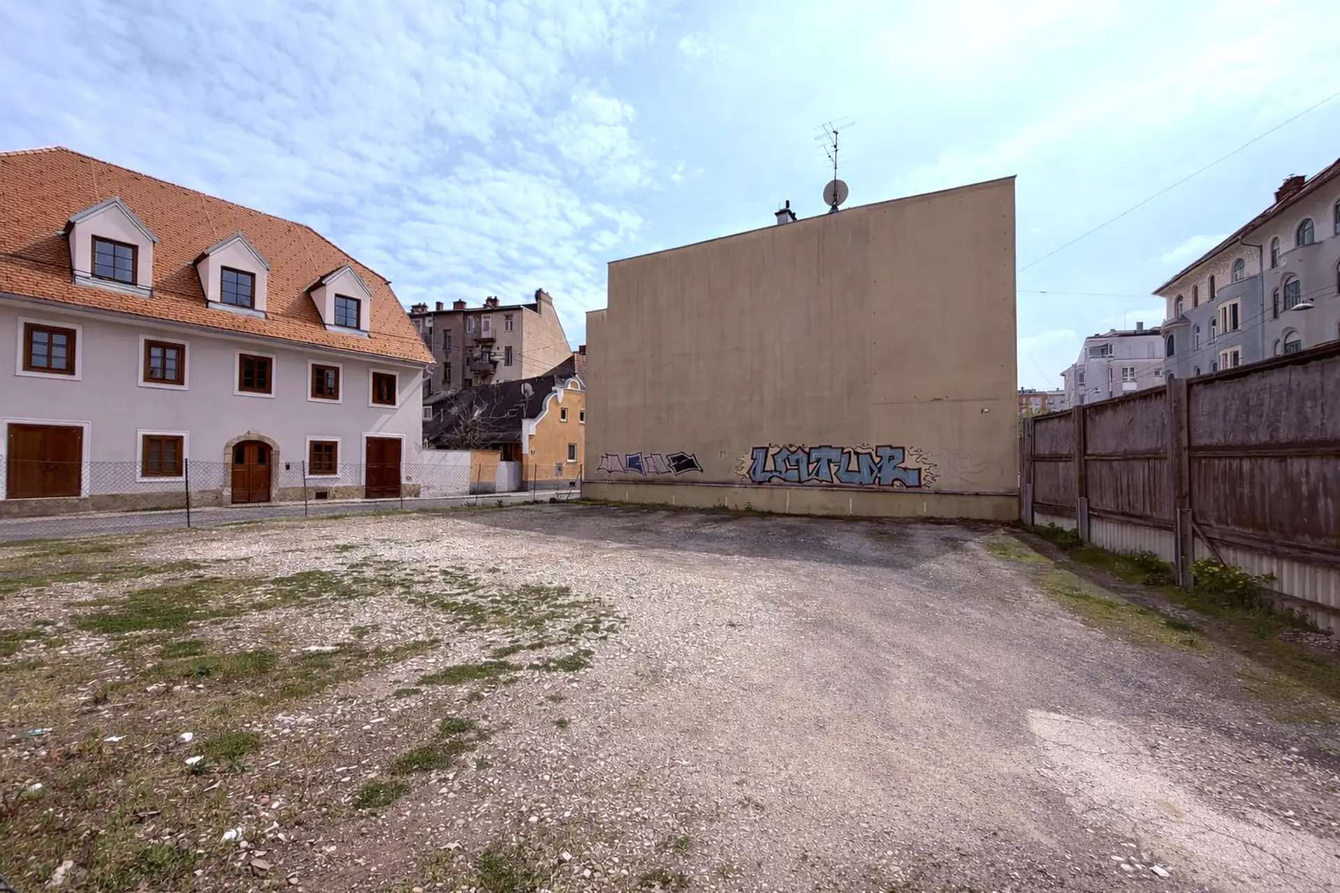Die Liegenschaft mit einer Fläche von ca. 340 m² befindet sich in sehr guter innerstädtischer Lage und ist von der Wielandgasse, Schönaugasse, umschlossen.
