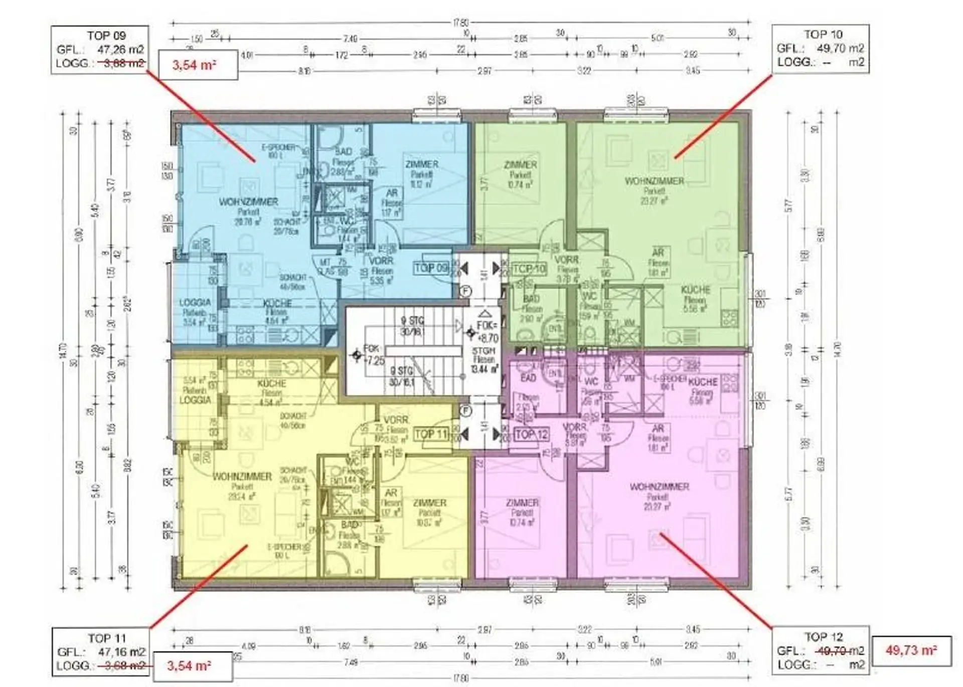 Auf der Liegenschaft befinden sich 19 wohnungseigentumstaugliche Objekte die sich wie folgt gliedern: