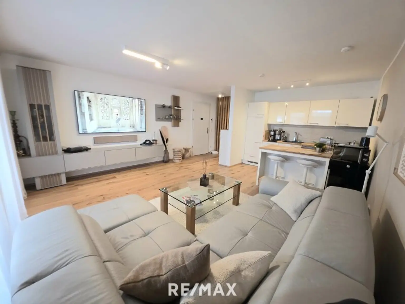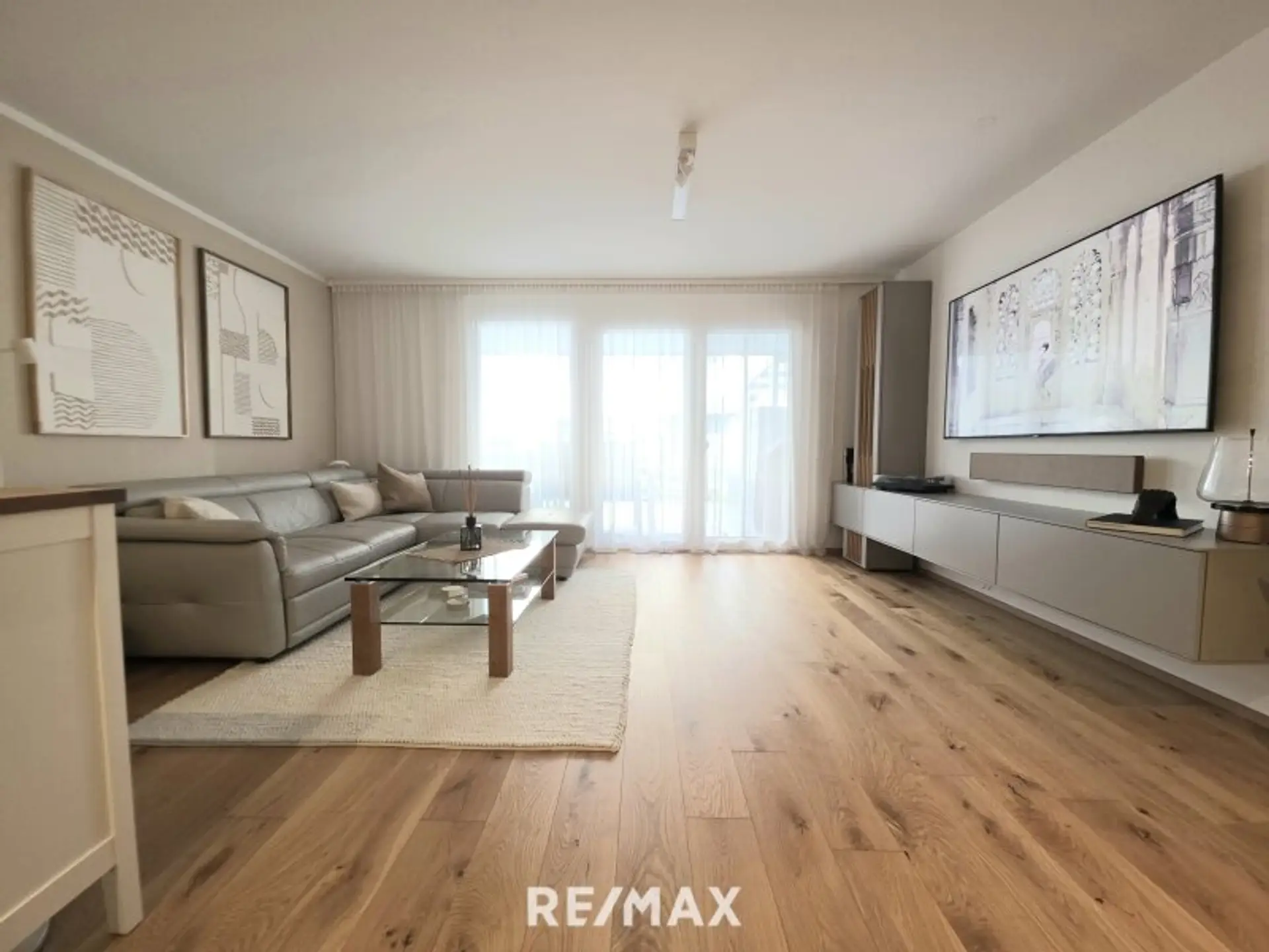 Vom zentralen Vorraum aus erreichen Sie alle Räumlichkeiten barrierefrei. Durch das Wohnzimmer, mit der grossen Glasfront und Schiebetür geht es auf die sehr grosse, überdachte Terrasse/16m². Die gesamte Wohnung wird mittels Fussbodenheizung beheizt und bietet sehr moderne und hochwertige Ausstattung.