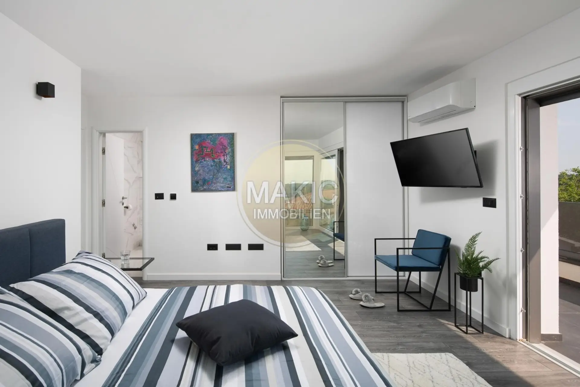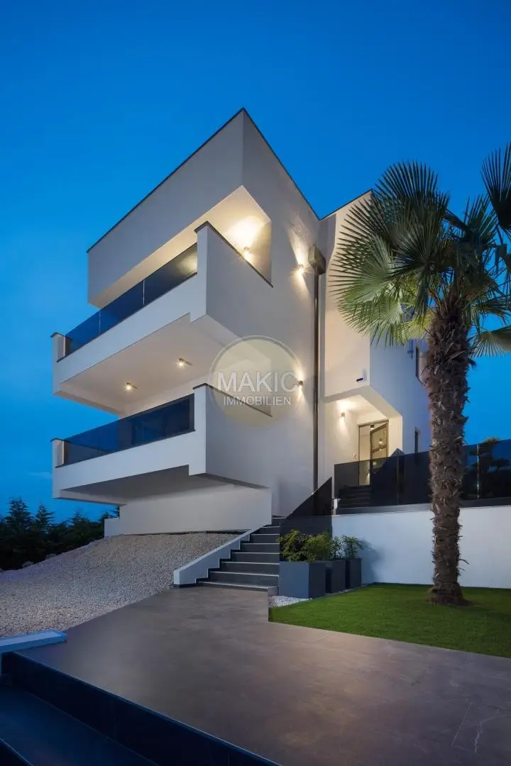 Die Villa besteht aus 3 Etagen. Im EG befindet sich der Eingangsbereich ein großes Wohnzimmer, eine Küche mit Essbereich, ein Schlafzimmer mit eigenem Badezimmer, Flur und 4 Terrassen.