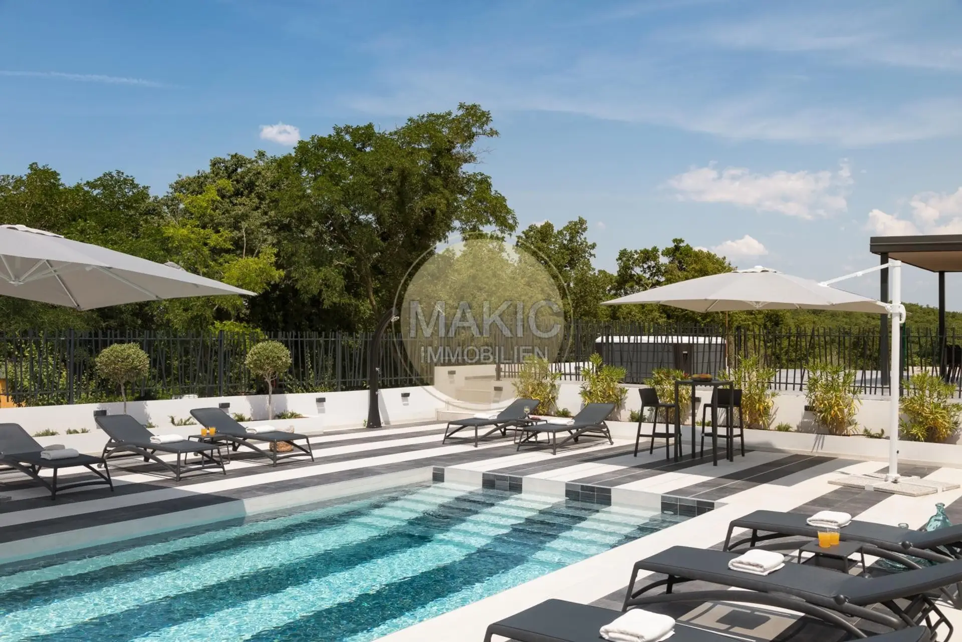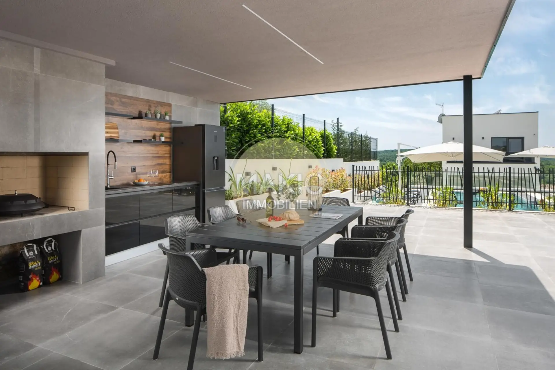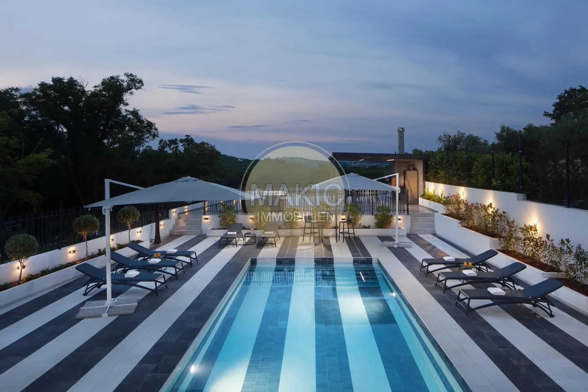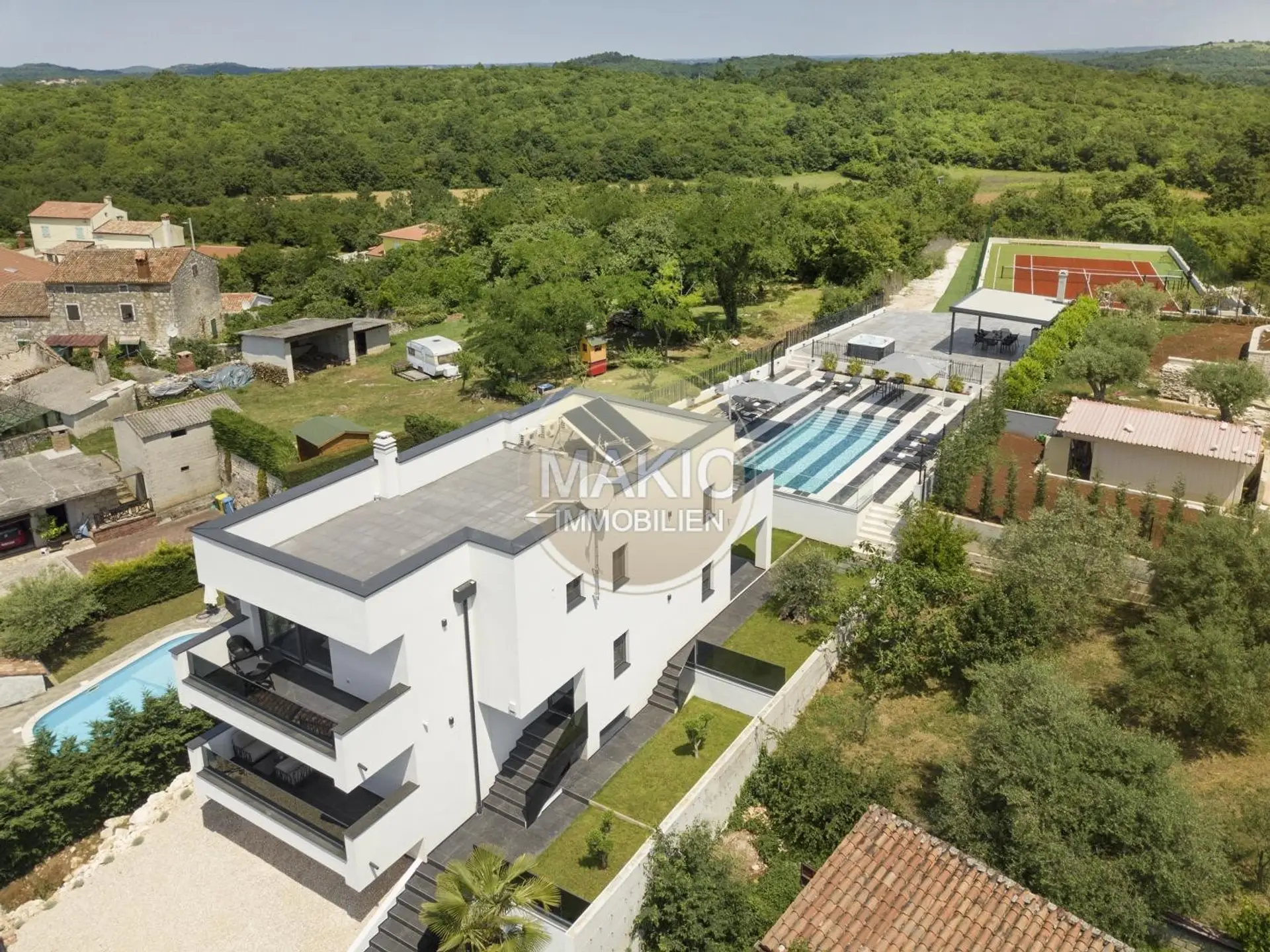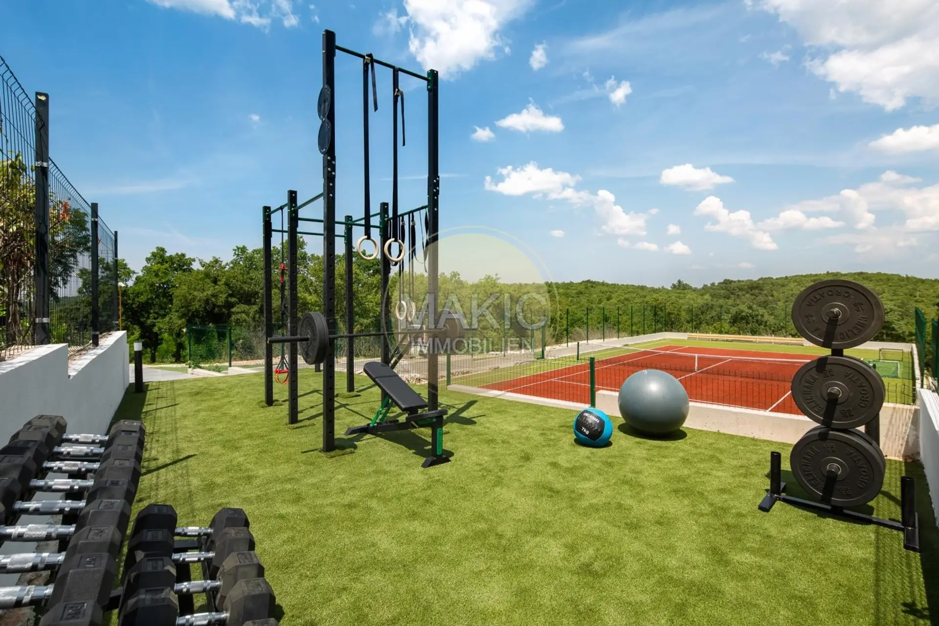 Highlight sind eine externe Küche, ein Jacuzzi, ein ca. 44m² beheizbarer Pool und dazu ein Tennisplatz mit outdoor Trainingsbereich.