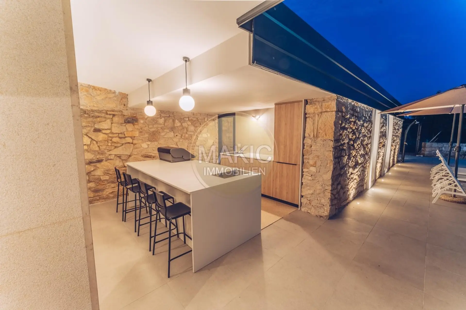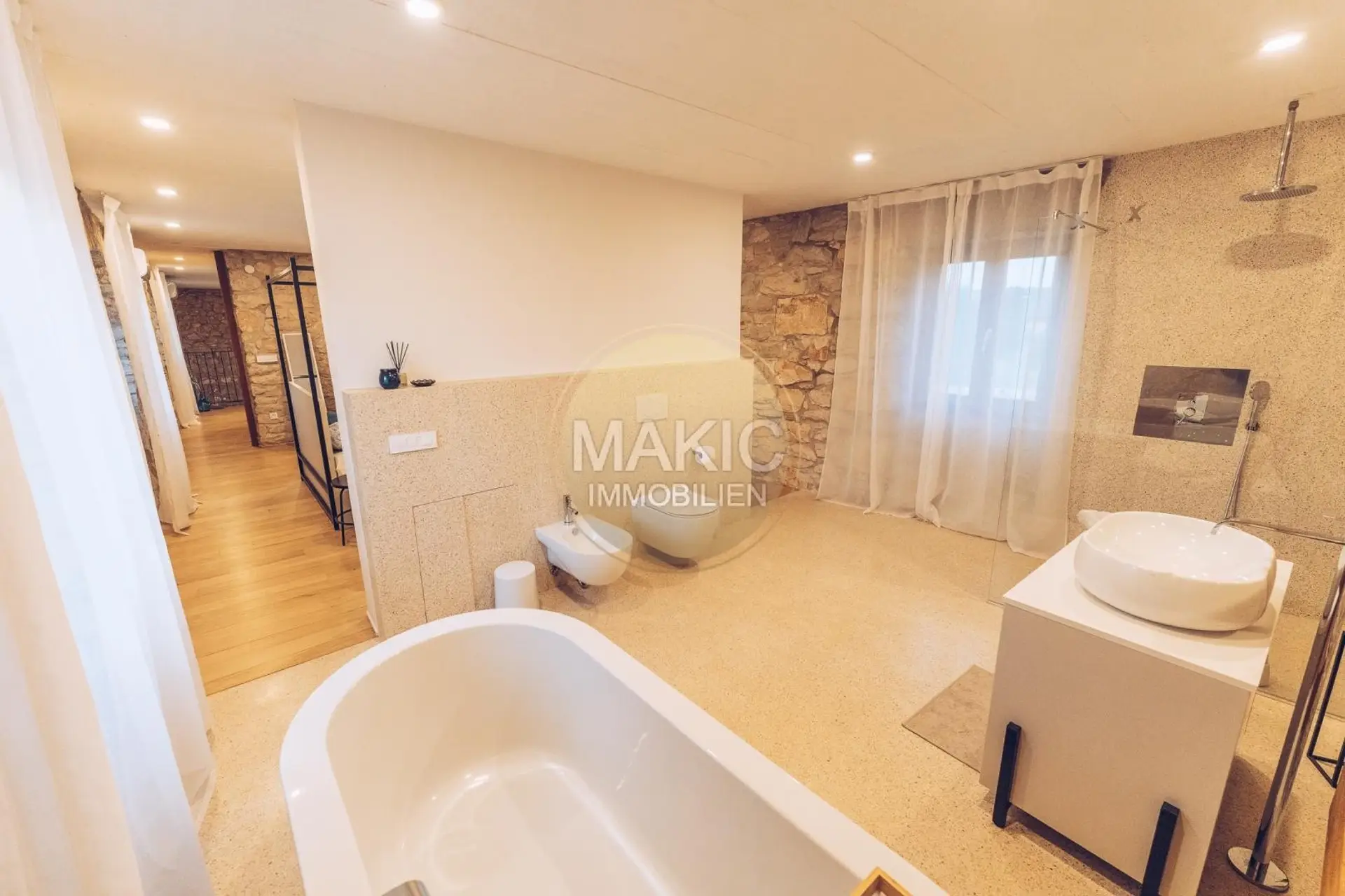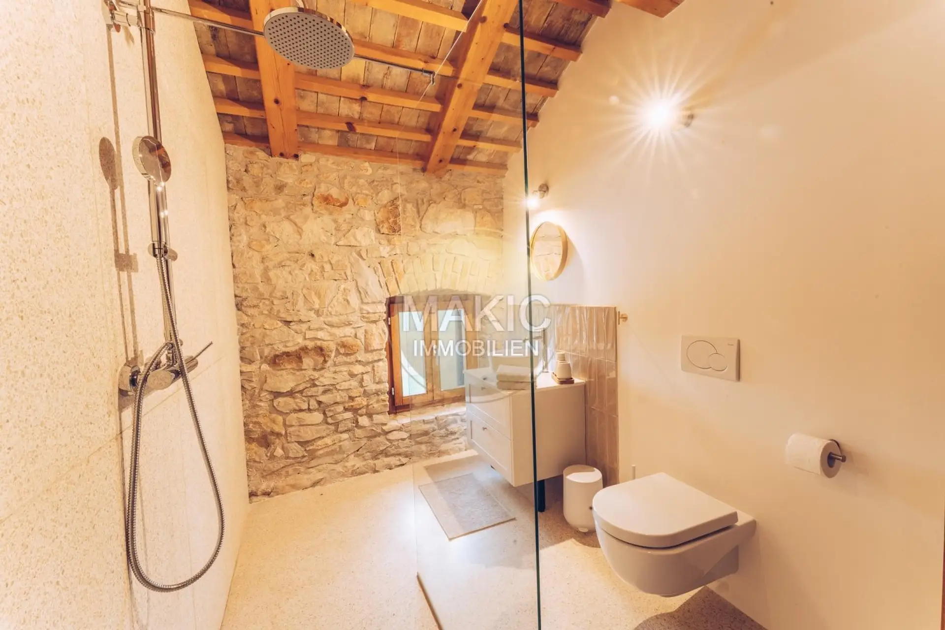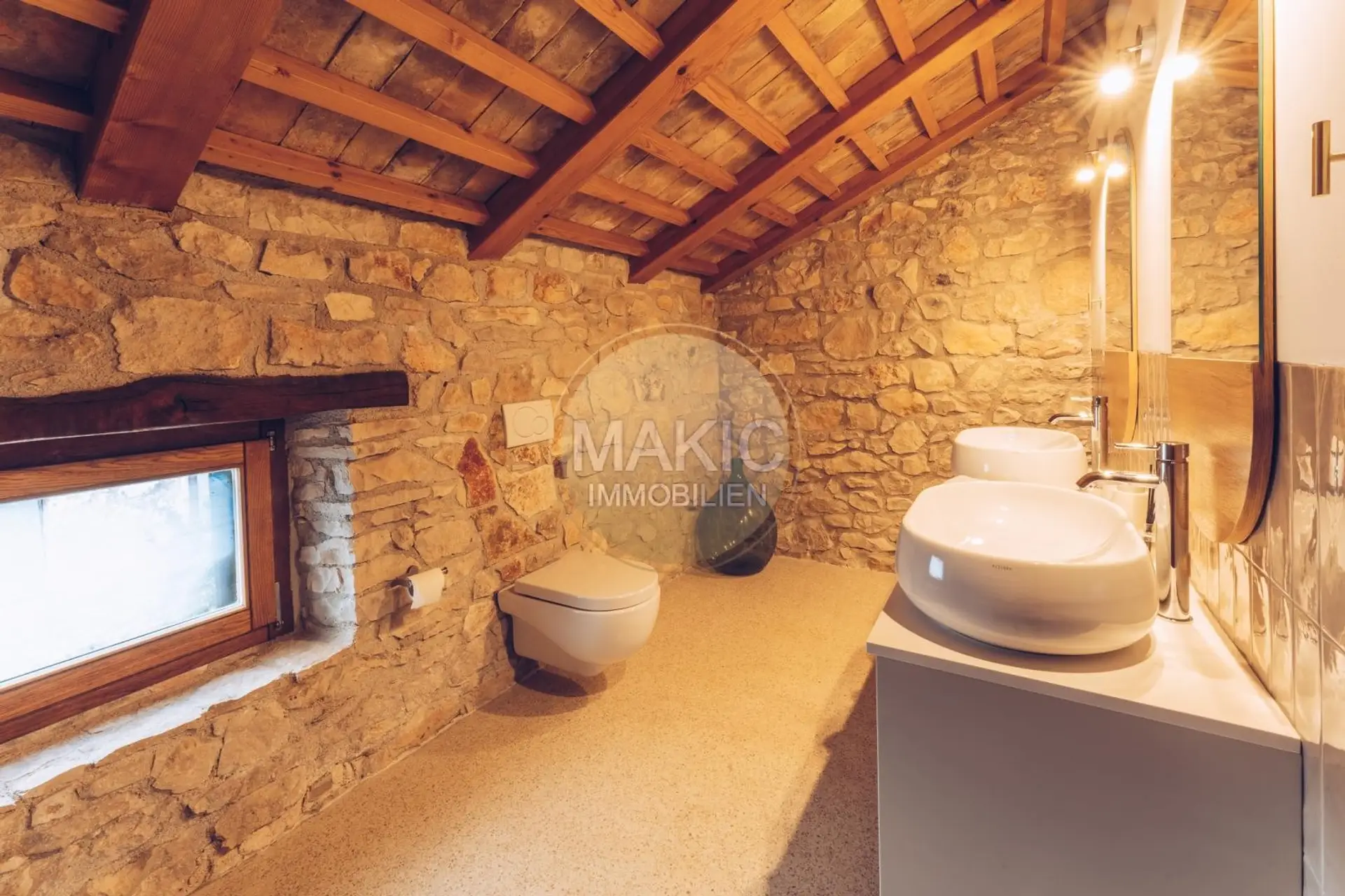 Die Renovierung dieser Villa erfolgte mit höchster Sorgfalt und Liebe zum Detail. Sie wurde komplett renoviert und geschmackvoll eingerichtet, wobei ein einzigartiger Mix aus einem traditionellen istrischen Steinhaus und moderner Funktionalität geschaffen wurde. Das Wohnzimmer ist mit einem Kamin ausgestattet, der nicht nur für Wärme sorgt, sondern auch eine gemütliche Atmosphäre schafft.