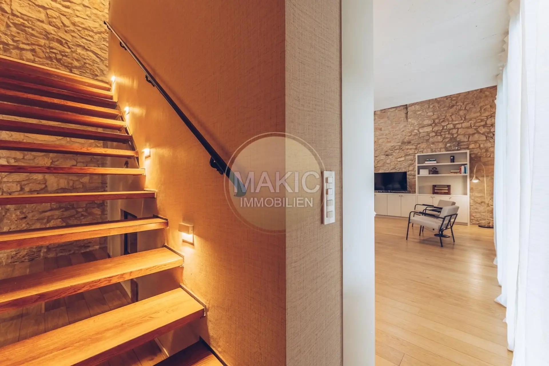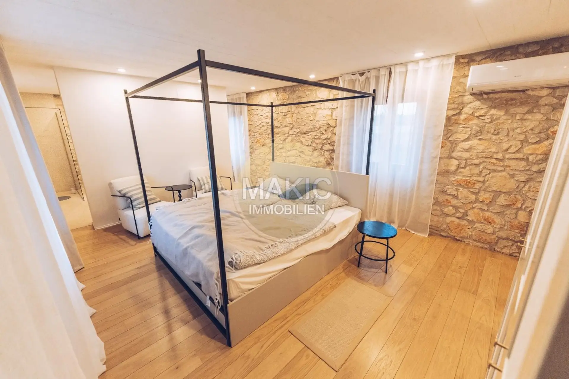 Das Gebäude wurde als Wohngebäude konzipiert und verfügt über eine Wohneinheit. Es bietet großzügige Wohnräume auf drei Etagen - Erdgeschoss, Obergeschoss und Dachgeschoss (P + 1K + Pk). Das Wohnzimmer zeichnet sich durch einen offenen Bereich aus, der sich über die gesamte Höhe des Gebäudes erstreckt und einen atemberaubenden Ausblick von der zweiten Etage in den Wohnbereich ermöglicht. Die moderne Küche wurde geschickt mit den traditionellen Details des Hauses kombiniert, wodurch ein harmonischer Mix aus Tradition und Moderne entsteht. Insgesamt verfügt die Villa über vier Schlafzimmer und drei Badezimmer, die alle sorgfältig renoviert und gestaltet wurden.