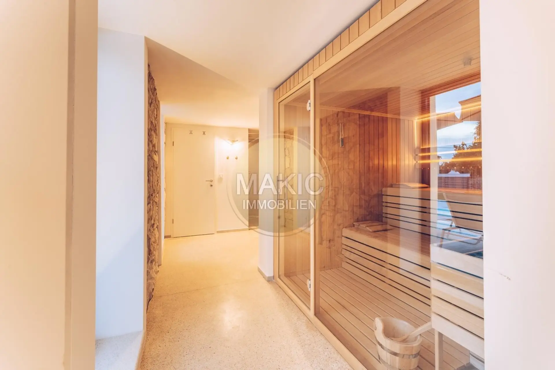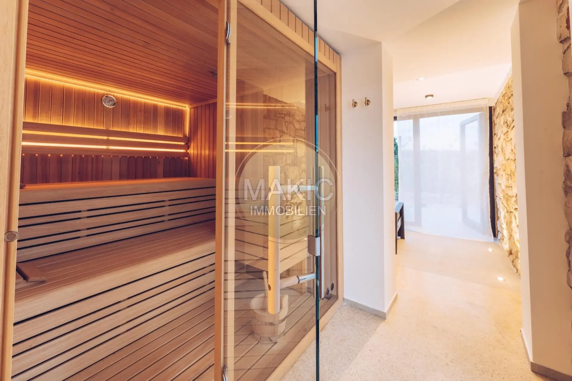 Der Garten dieser Villa ist ein wahres Juwel. Neben einem großzügigen Pool gibt es eine Sauna und eine Dusche im Freien. Die Toscana-Flair-Pergola bietet einen idealen Ort für gesellige Abende und romantische Momente. Dies ist ein Ort, der nicht nur ein Haus, sondern auch eine Lebensweise verkörpert - ein Ort, der mit Seele und Emotionen bewohnt werden sollte.