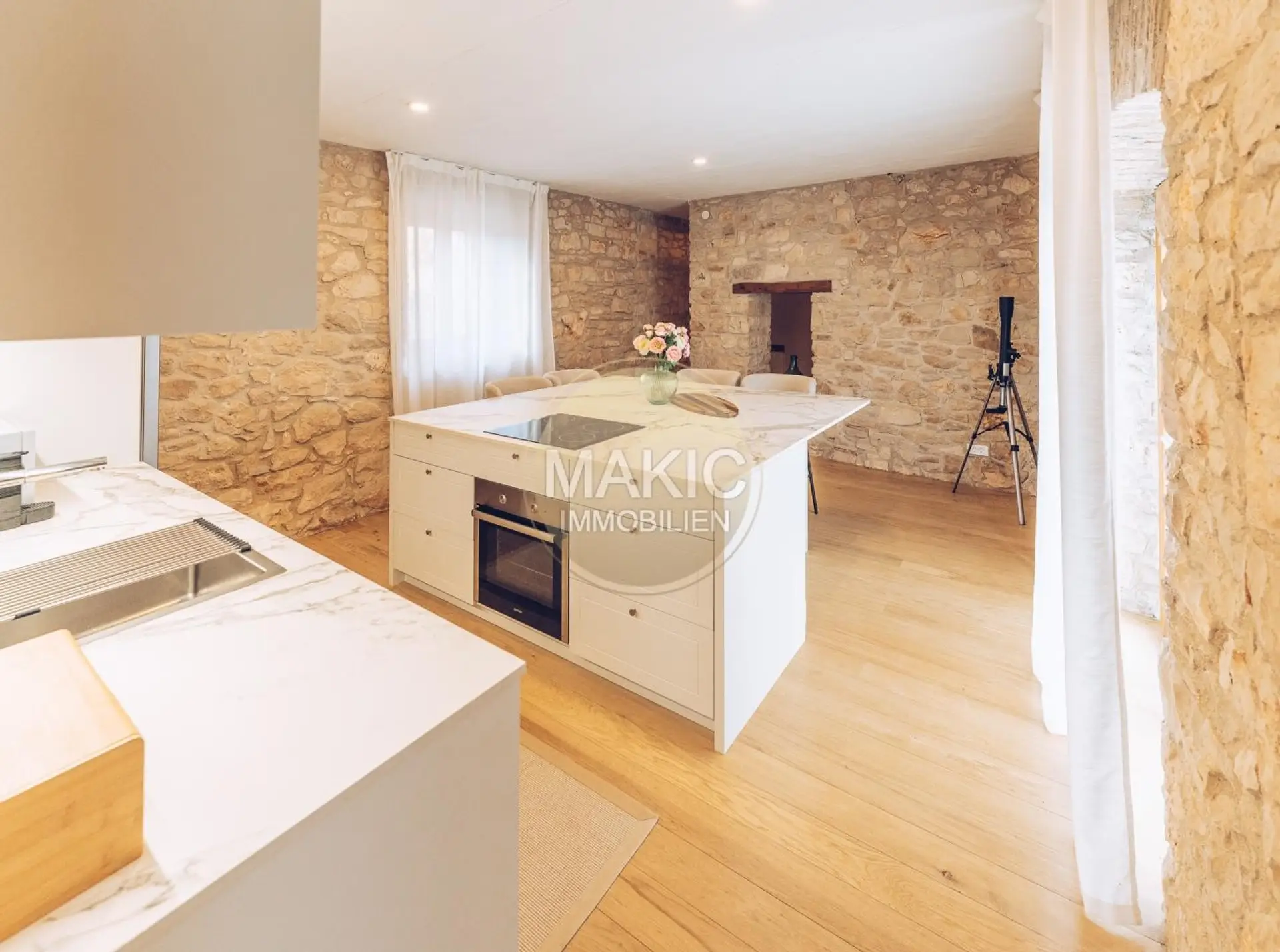 Die moderne Küche wurde geschickt mit den traditionellen Details des Hauses kombiniert. Hier trifft Funktionalität auf den Charme vergangener Zeiten.