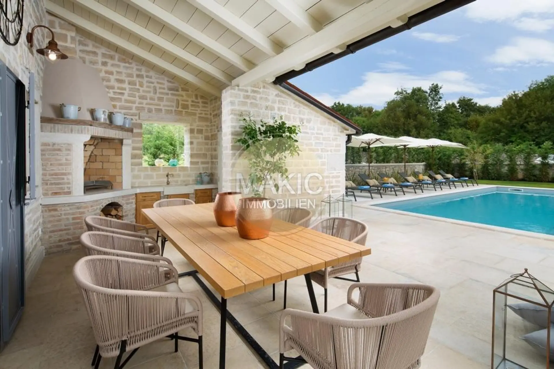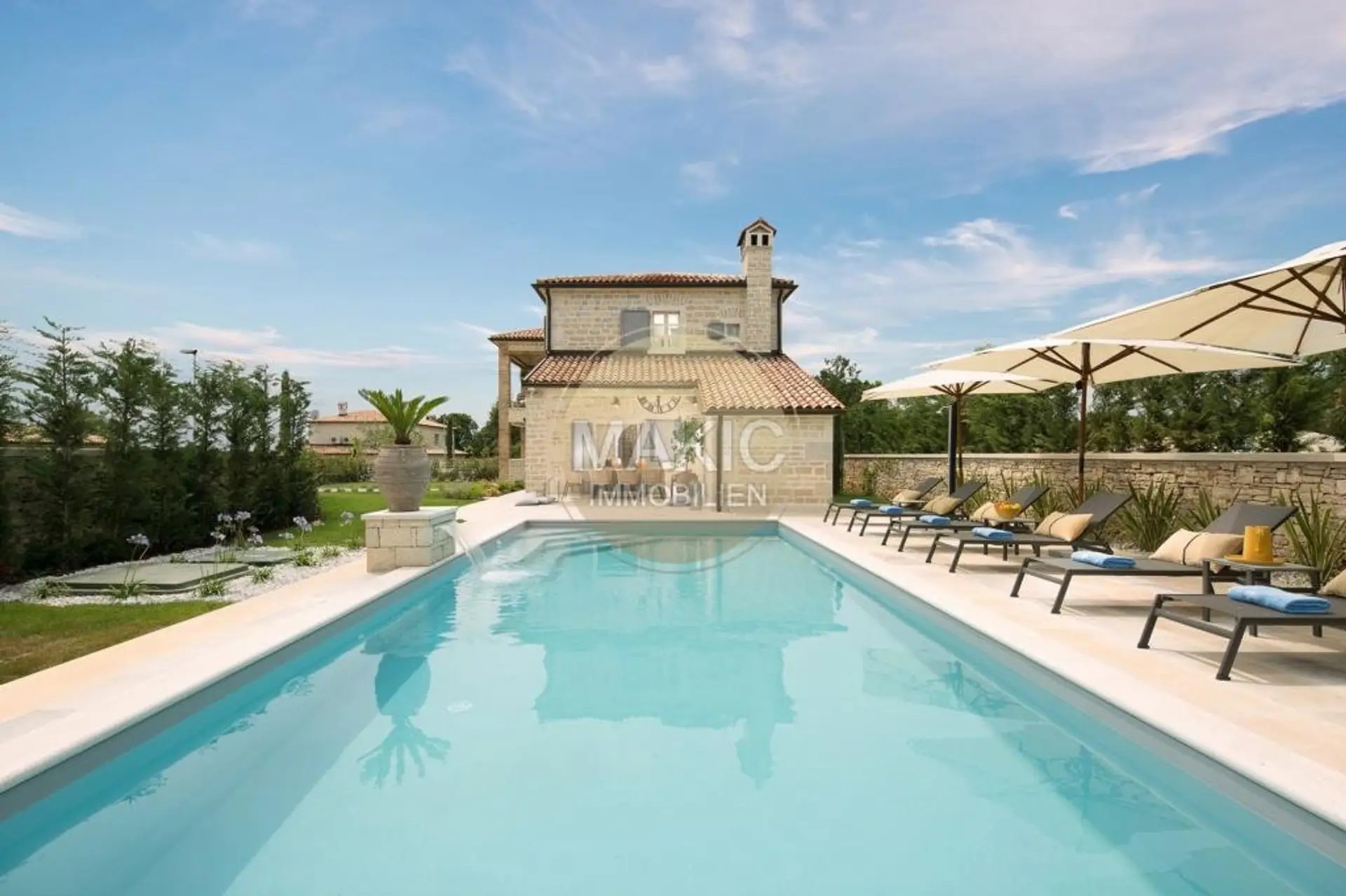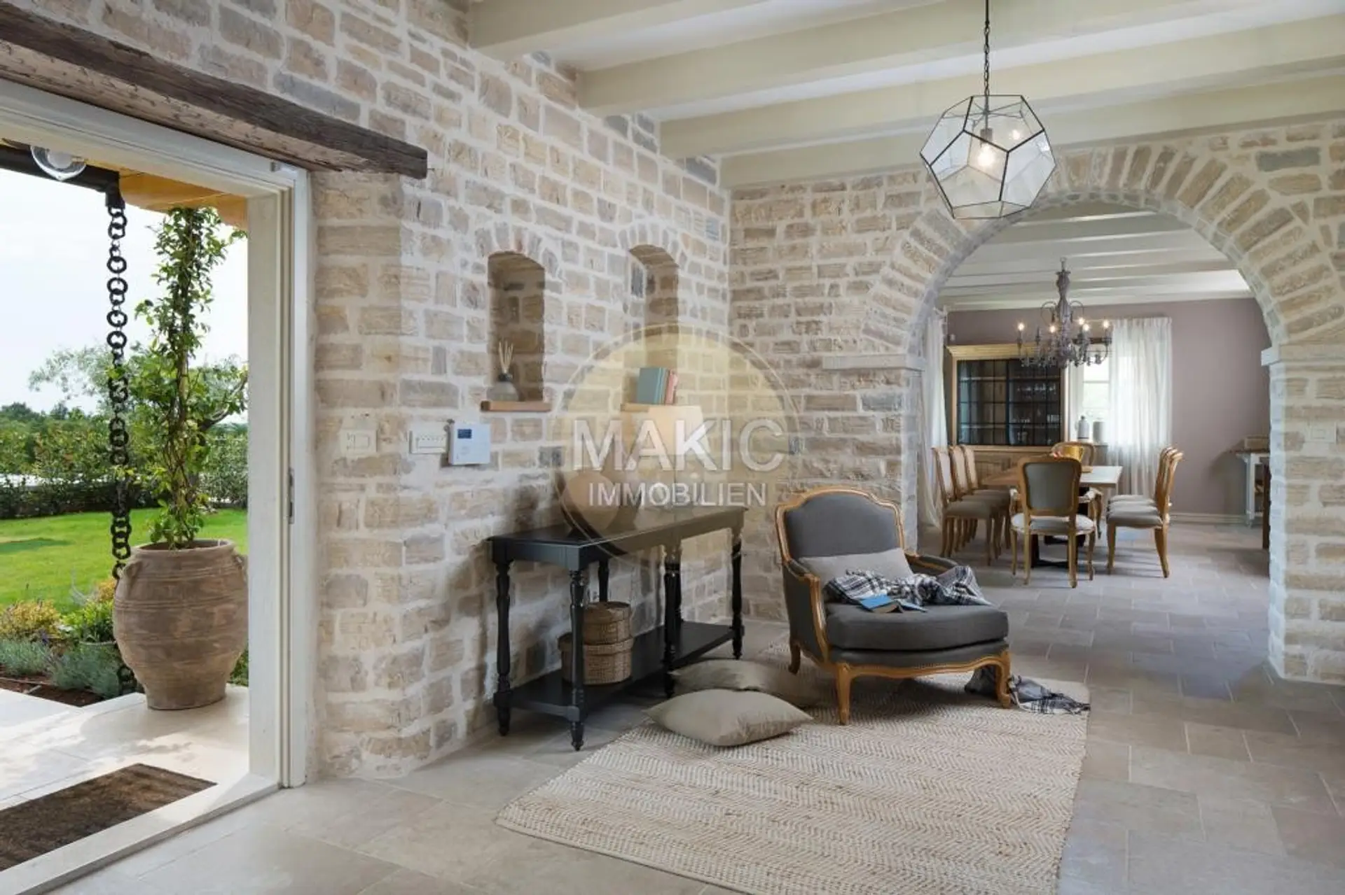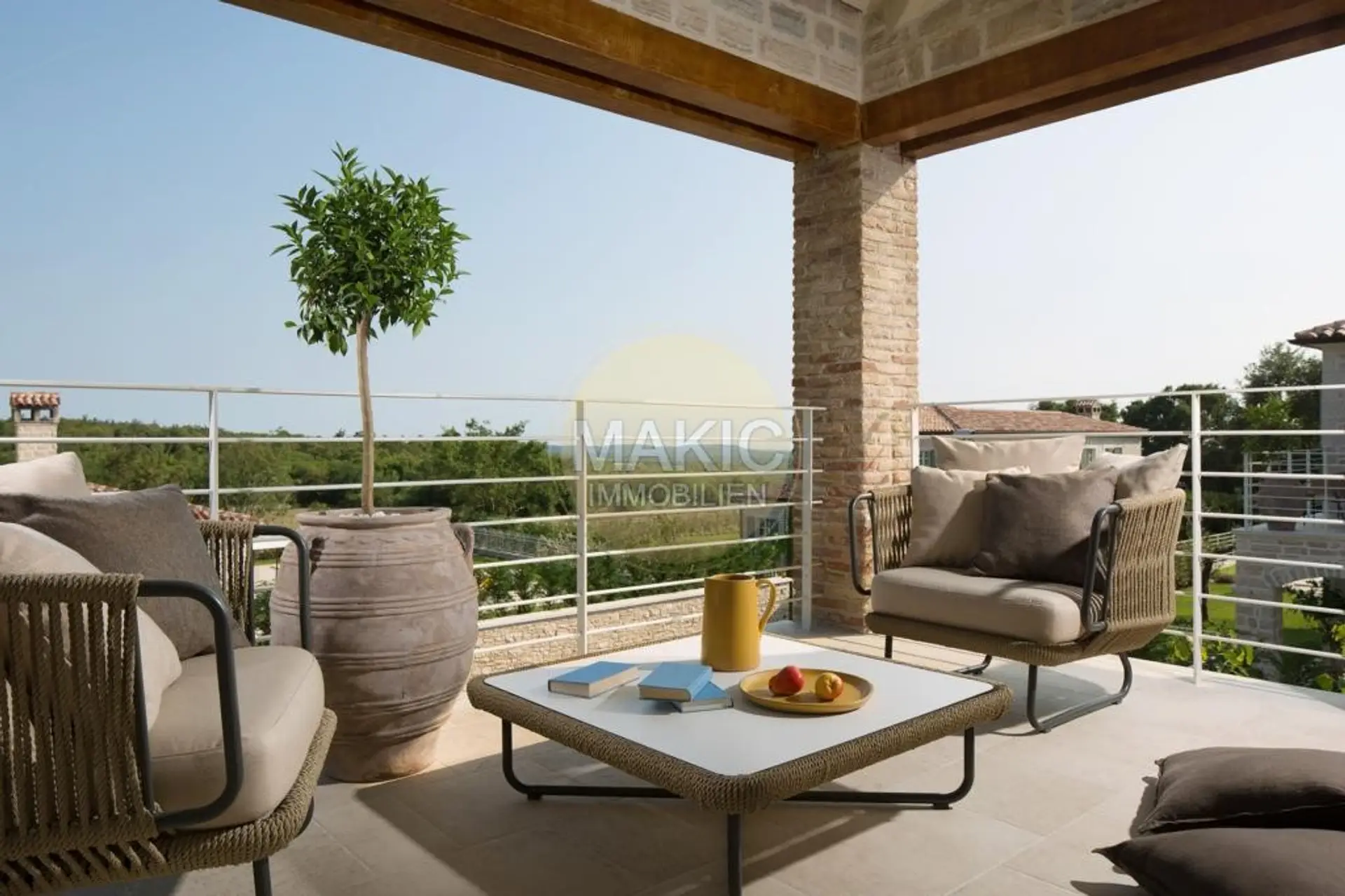 Die Villa ist großzügig, in einem Mix aus Contemporary und Vintage-Style eingerichtet und bieten ihrem Neubesitzer und seinen Gästen einen sehr hohen Wohnkomfort. Vom Balkon im ersten Stock des Domizils bietet sich ein wunderschöner Panoramablick auf die blaue Adria. Der Villenpark verfügt über exklusive, gemeinsame Sport- und Freizeiteinrichtungen, die ein einzigartiges Angebot in dieser Art von Ferienhäusern in Istrien darstellen: zwei Tennisplätze, ein Mehrzweckspielplatz für Basketball, Volleyball und Fußball, zwei Freiluft-Bowlingbahnen, Outdoor-Fitness, ein riesiger Kinderspielplatz und ein Garten, in dem die Bewohner gesundes Gemüse aus biologischem Anbau ernten können.