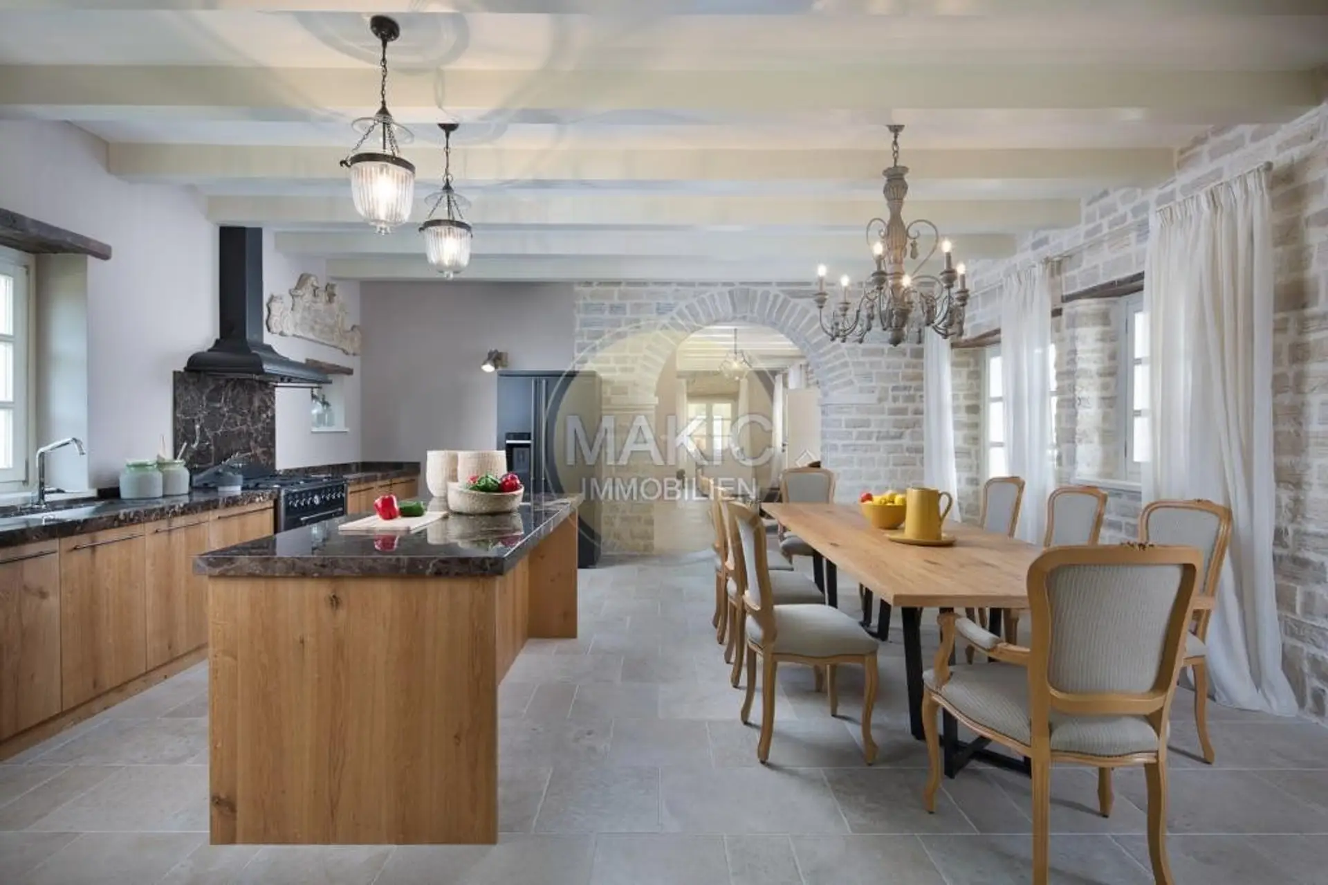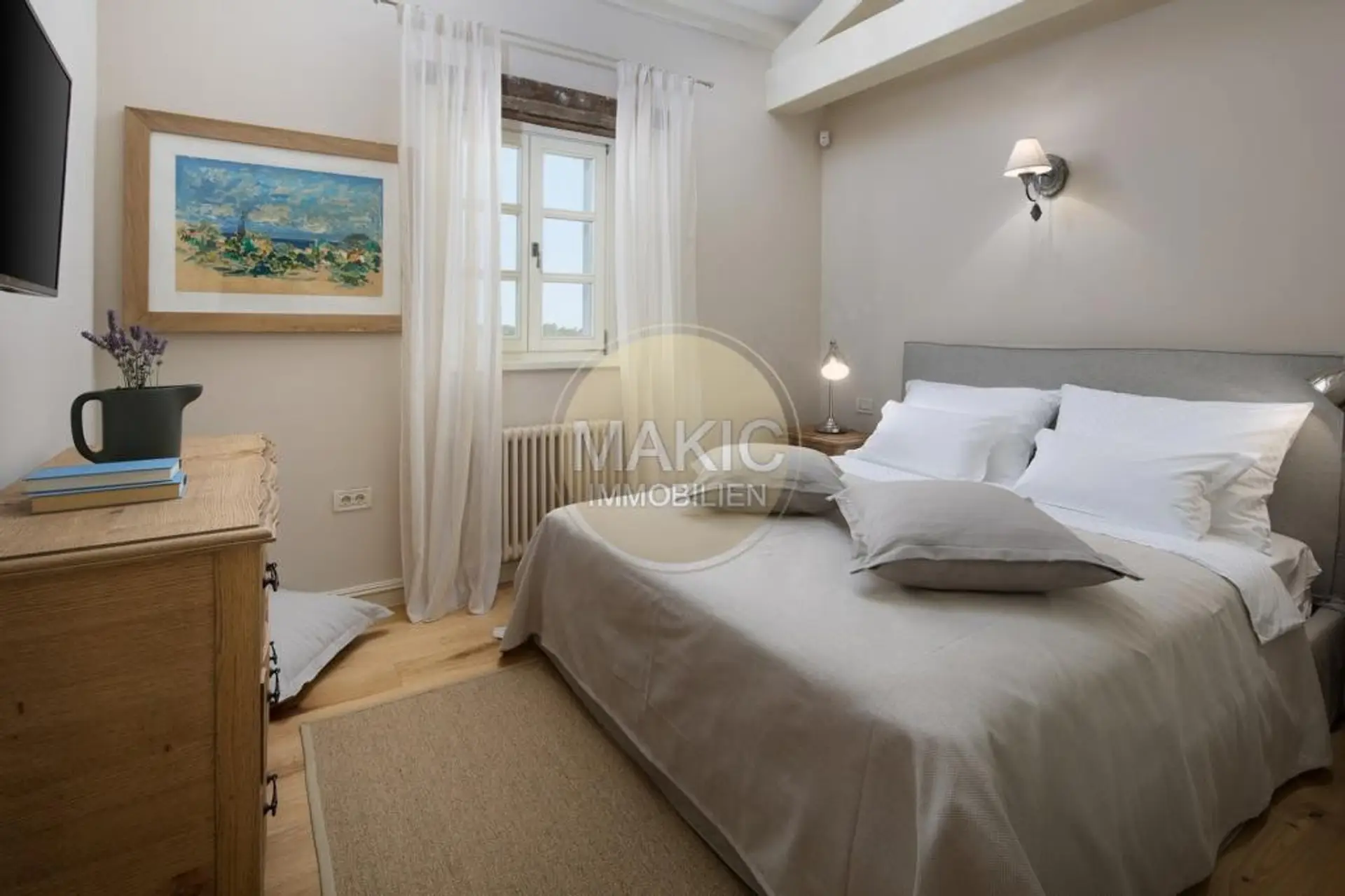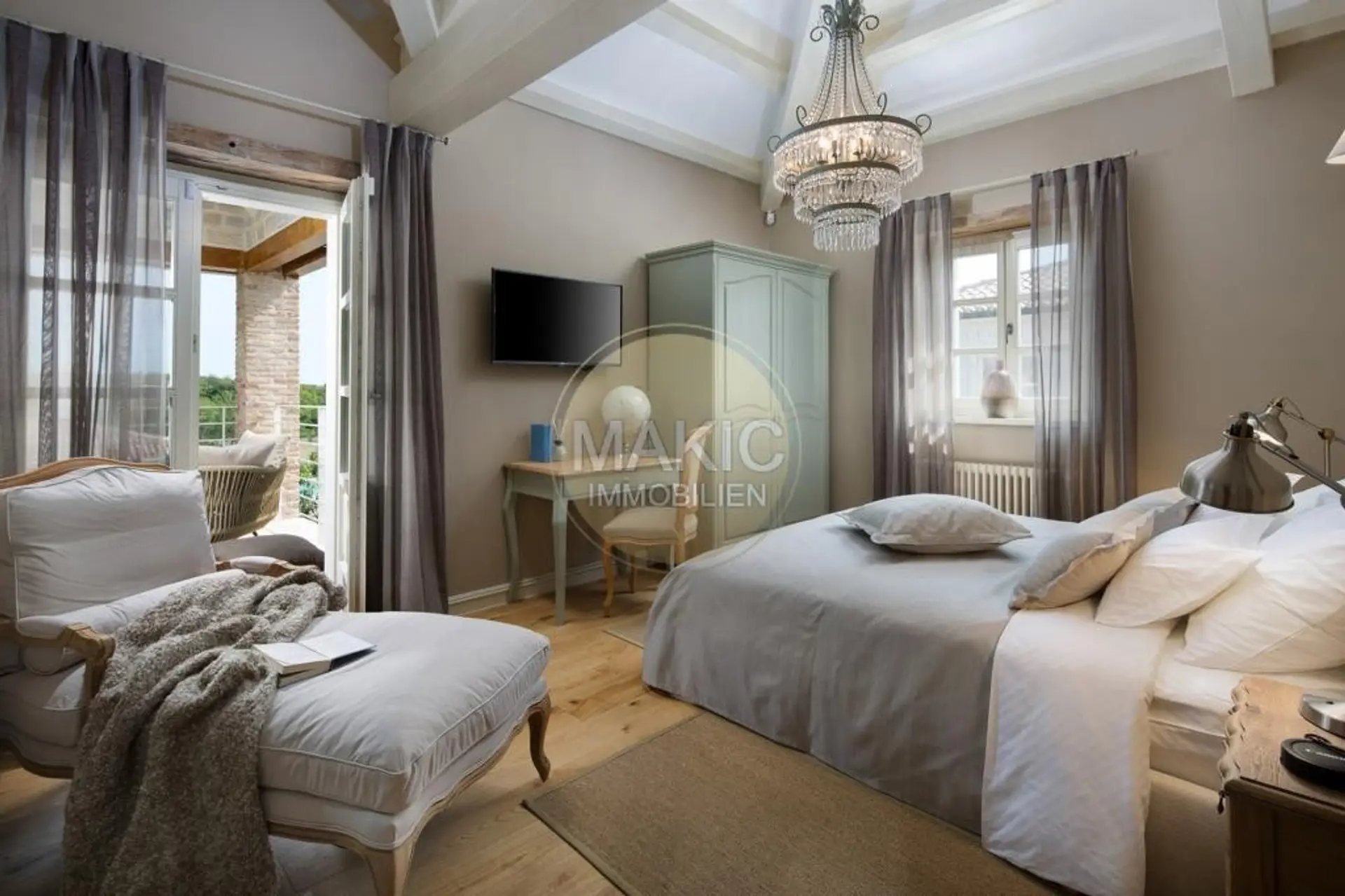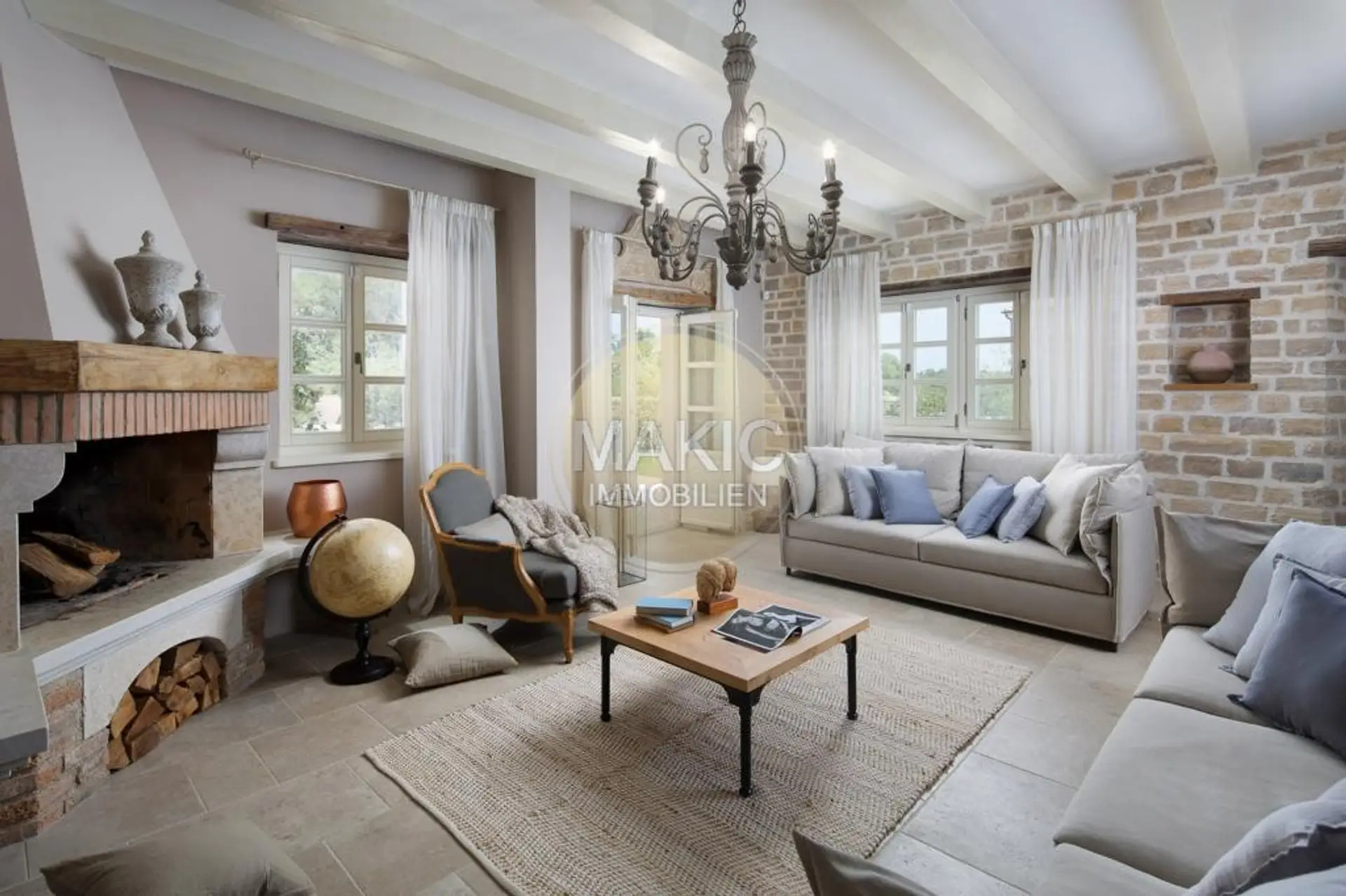 Die Villa ist großzügig, in einem Mix aus Contemporary und Vintage-Style eingerichtet und bieten ihrem Neubesitzer und seinen Gästen einen sehr hohen Wohnkomfort. Vom Balkon im ersten Stock des Domizils bietet sich ein wunderschöner Panoramablick auf die blaue Adria. Der Villenpark verfügt über exklusive, gemeinsame Sport- und Freizeiteinrichtungen, die ein einzigartiges Angebot in dieser Art von Ferienhäusern in Istrien darstellen: zwei Tennisplätze, ein Mehrzweckspielplatz für Basketball, Volleyball und Fußball, zwei Freiluft-Bowlingbahnen, Outdoor-Fitness, ein riesiger Kinderspielplatz und ein Garten, in dem die Bewohner gesundes Gemüse aus biologischem Anbau ernten können.