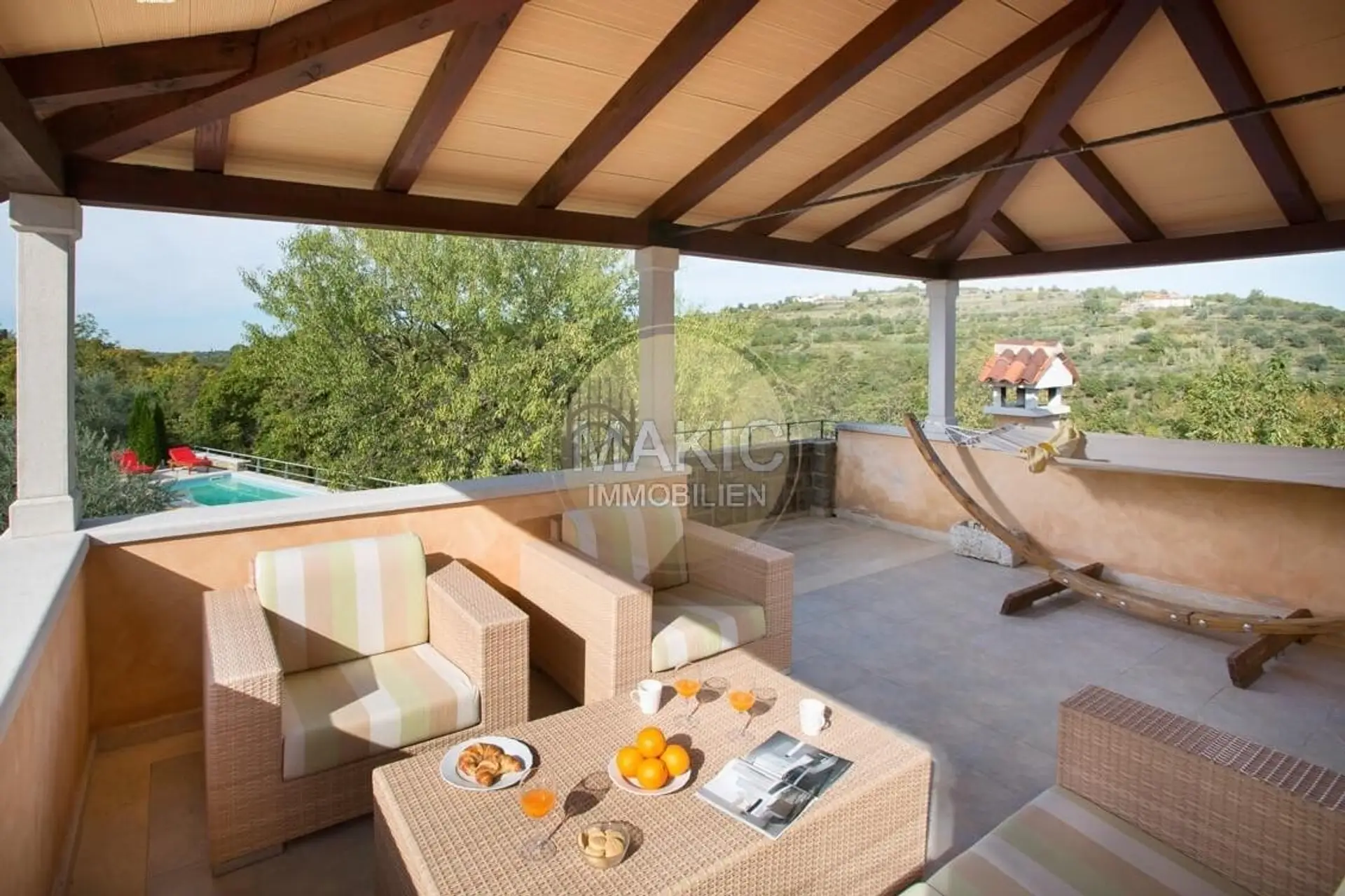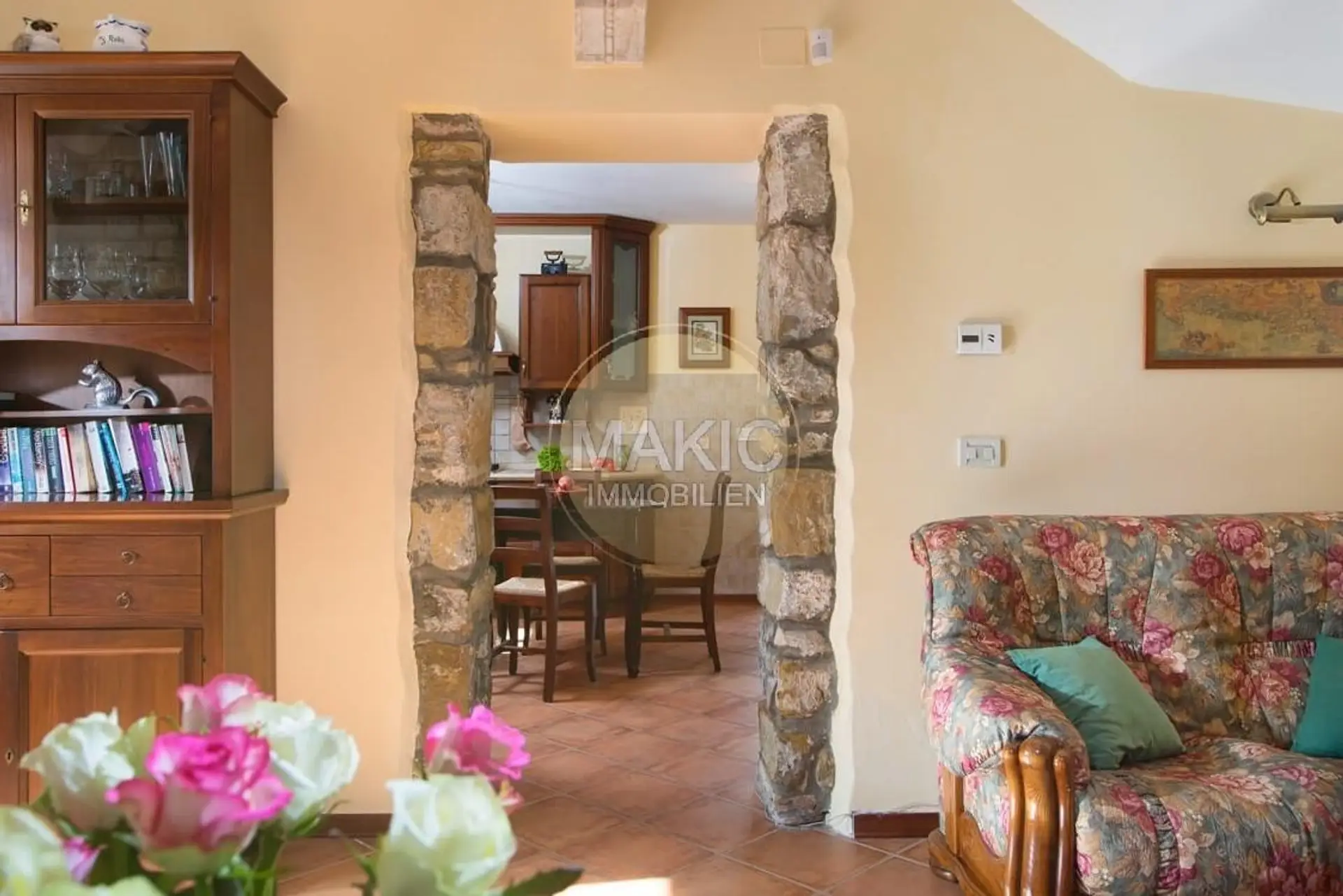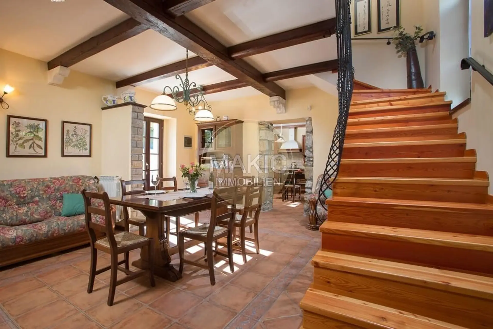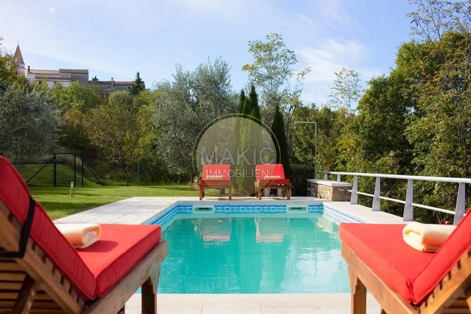 Momjan ist ein schön gelegener Ort auf 270 Metern über dem Meeresspiegel, nur ca. 18 km von der Riviera Umag und Novigrad entfernt. Der Ort strahlt Geschichte aus und ist umgeben von wunderschöner Natur. Der Boden ist ideal für den Anbau von Wein, Oliven und Obst. Der Muscat von Momjan ist ein bekannter und geschätzter Wein.